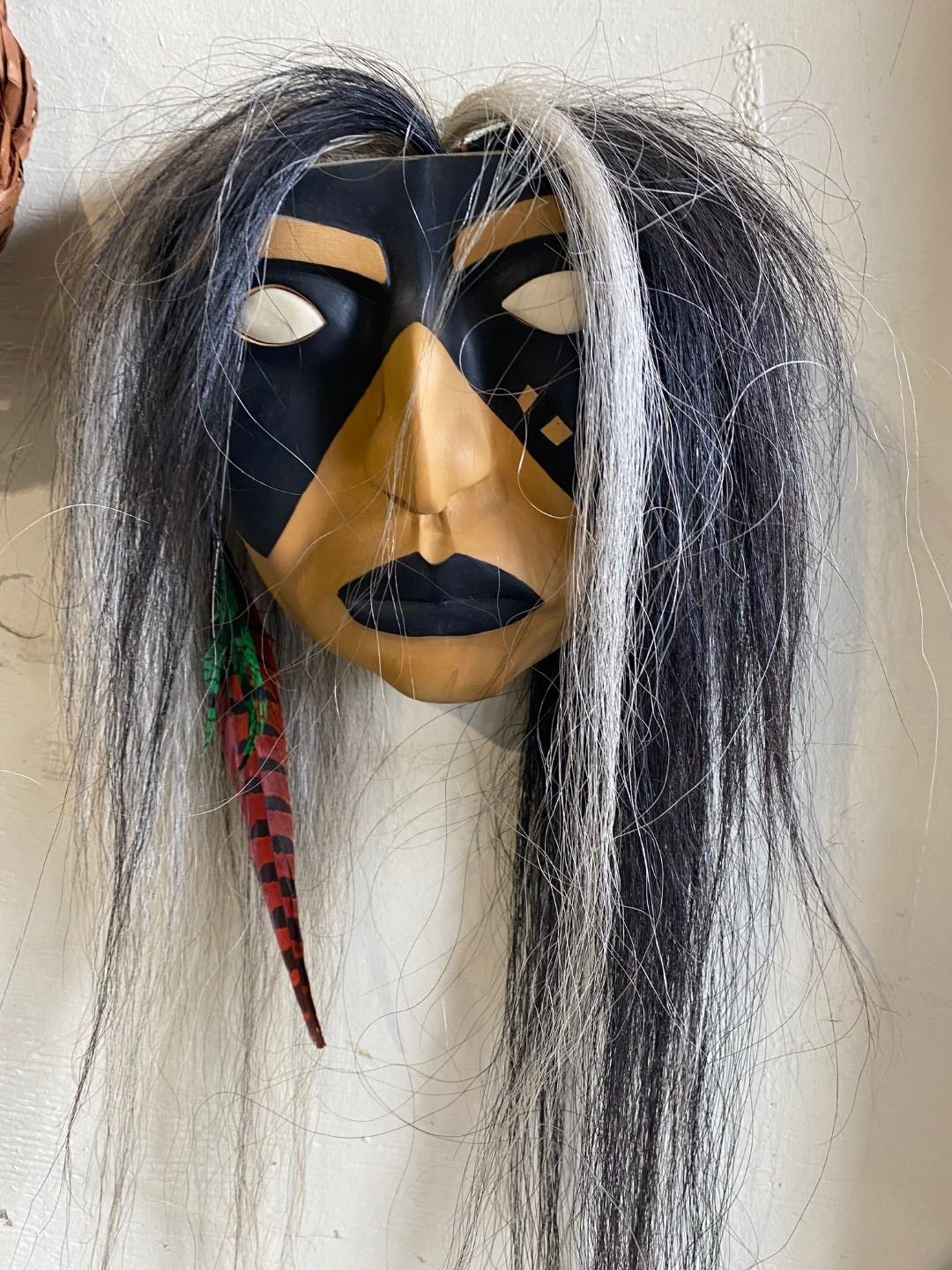 CARVED WEST COAST FIRST NATIONS MASK TITLES 'GHOST DANCER' BY GENE BRABANT AND G. W. HARVEY