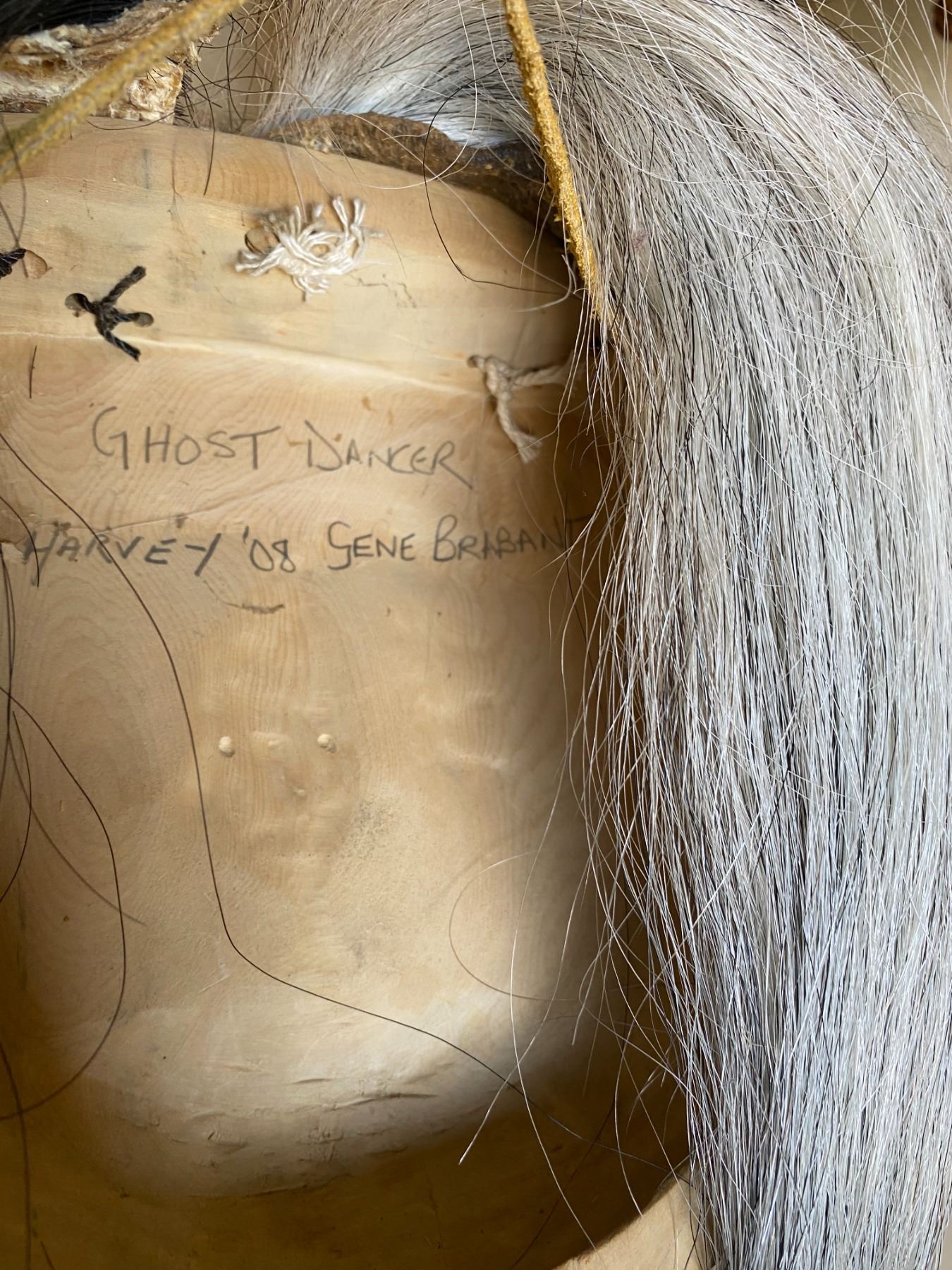 CARVED WEST COAST FIRST NATIONS MASK TITLES 'GHOST DANCER' BY GENE BRABANT AND G. W. HARVEY APPROX. 9"