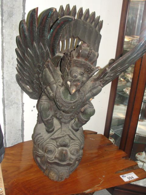 CARVED WOODEN ORIENTAL GRIFFIN/ WINGED DEMON