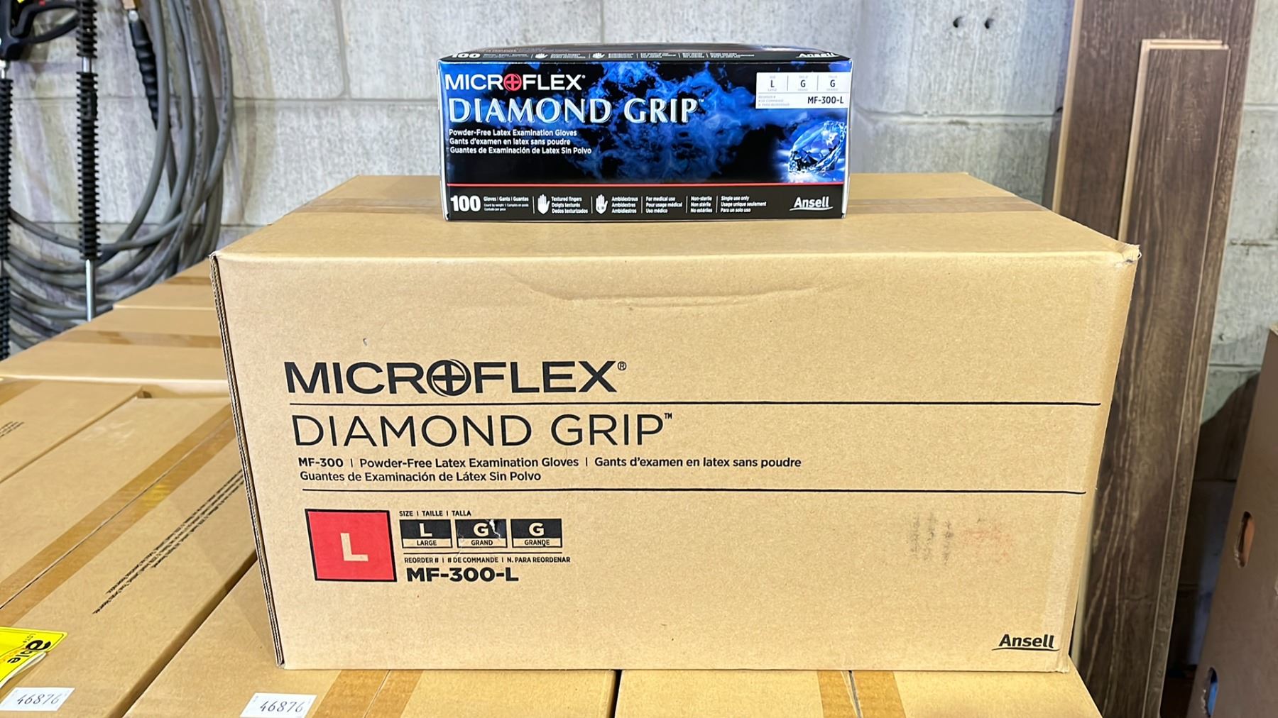 CASE OF 10 MICROFLEX DIAMOND GRIP POWDER-FREE LATEX EXAMINATION GLOVES SIZE L (1000 COUNT PER CASE)