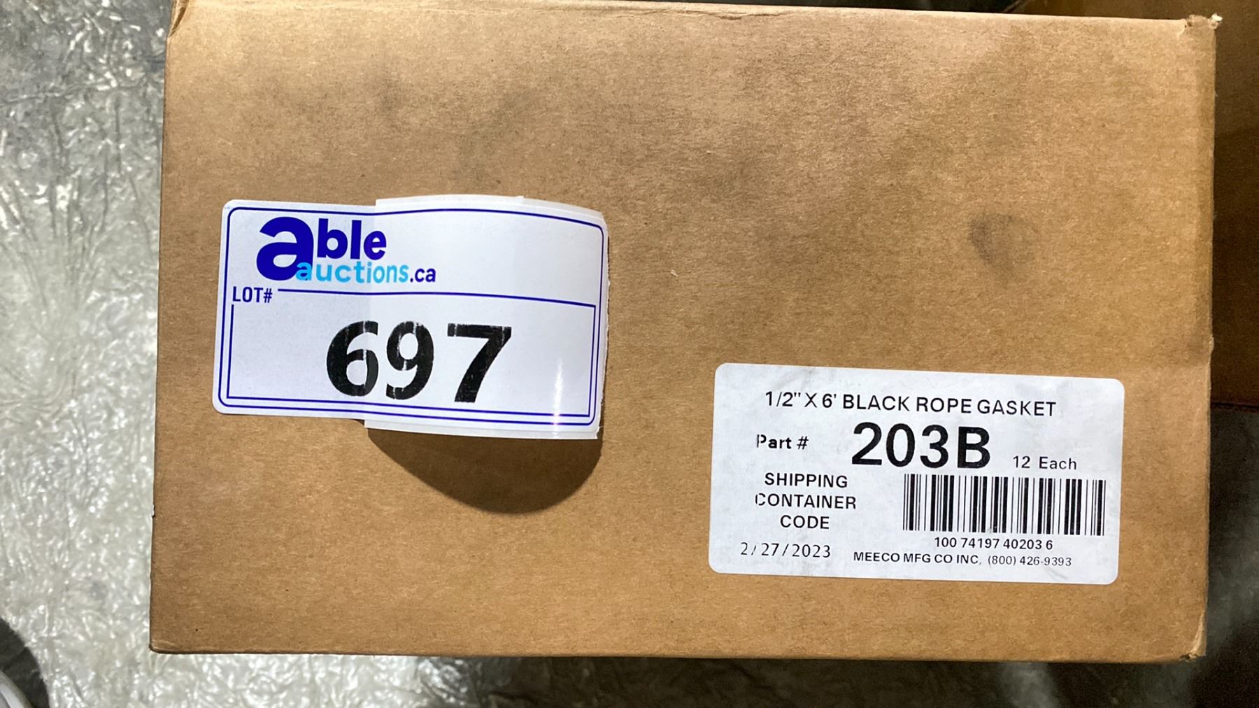 CASE OF 12 1/2"X6' BLACK ROPE GASKET PART #203B