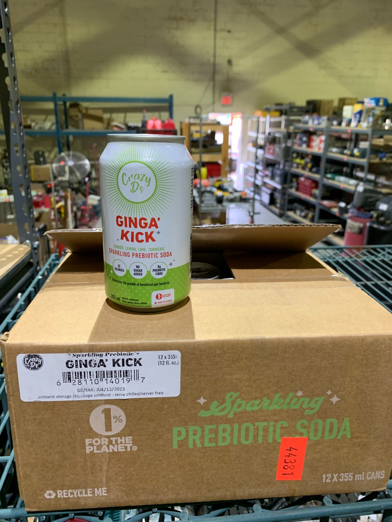 CASE OF 12 CRAZY DE GINGA' KICK SPARKLING PREBIOTIC SODA (355ML EACH)