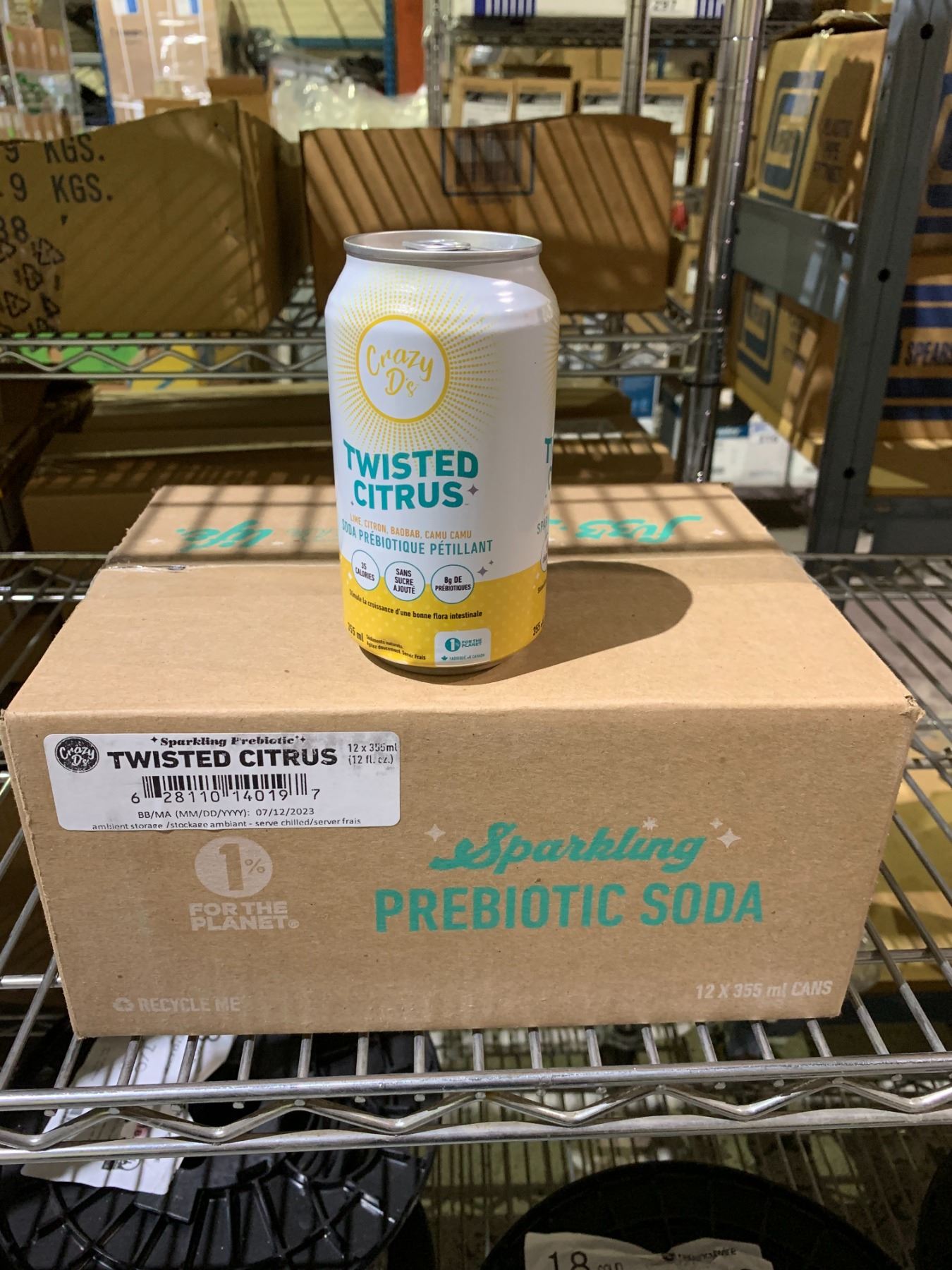 CASE OF 12 CRAZY DE TWISTED CITRUS SPARKLING PREBIOTIC SODA (355ML EACH)