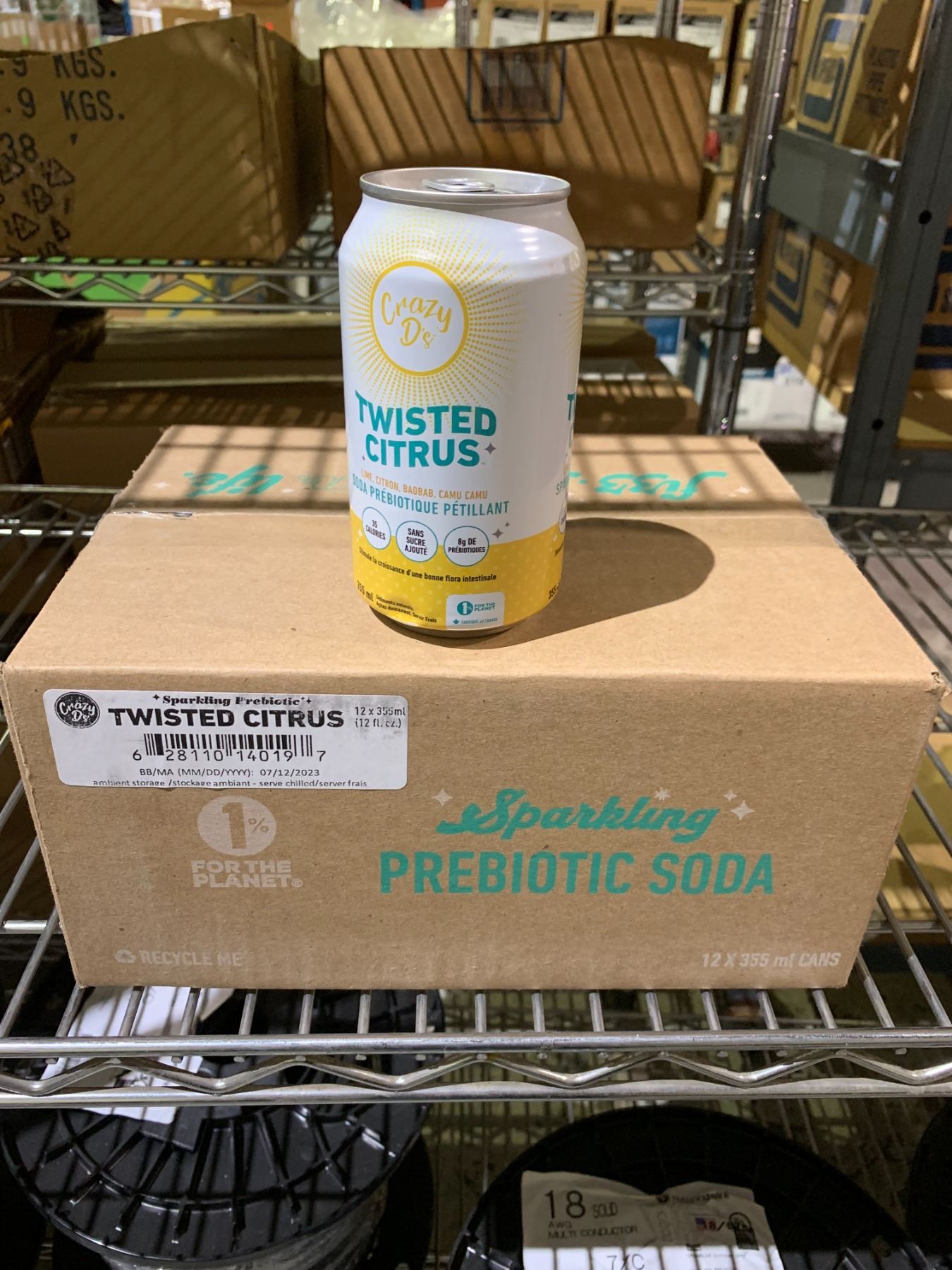 CASE OF 12 CRAZY DE TWISTED CITRUS SPARKLING PREBIOTIC SODA (355ML EACH)