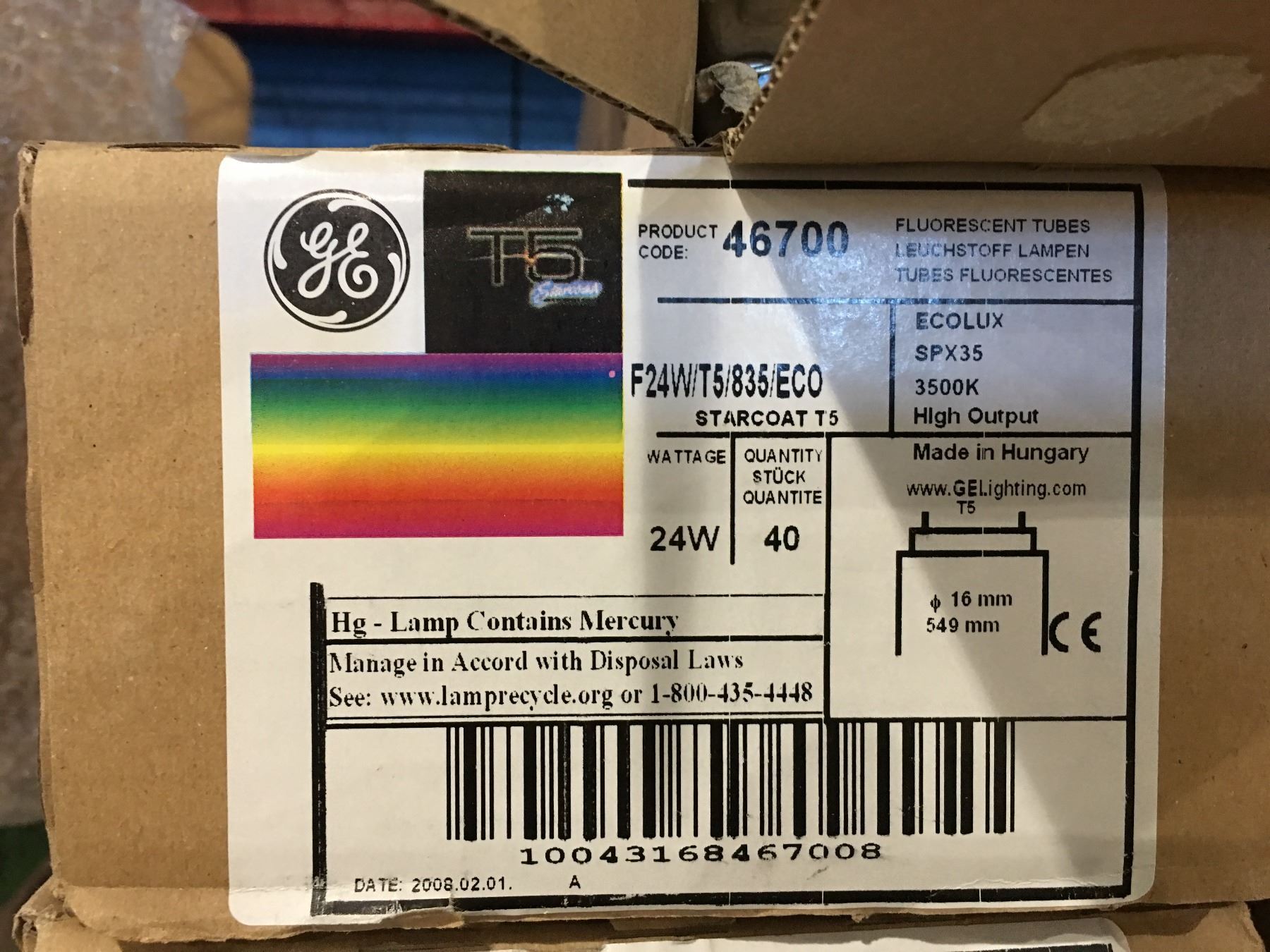 CASE OF 40 GE STAR COAT T5 FLUORESCENT LIGHT TUBES