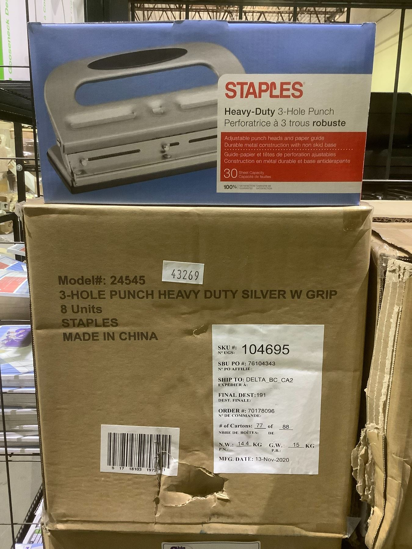 CASE OF 8 STAPLES HEAVY DUTY 3 HOLE PUNCH