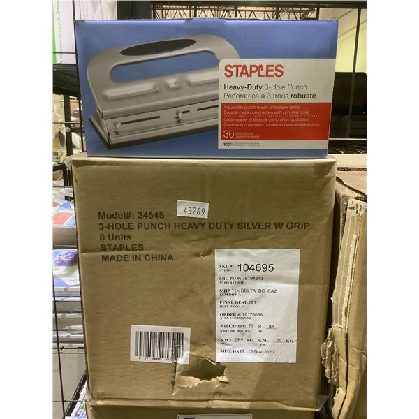 CASE OF 8 STAPLES HEAVY DUTY 3 HOLE PUNCH