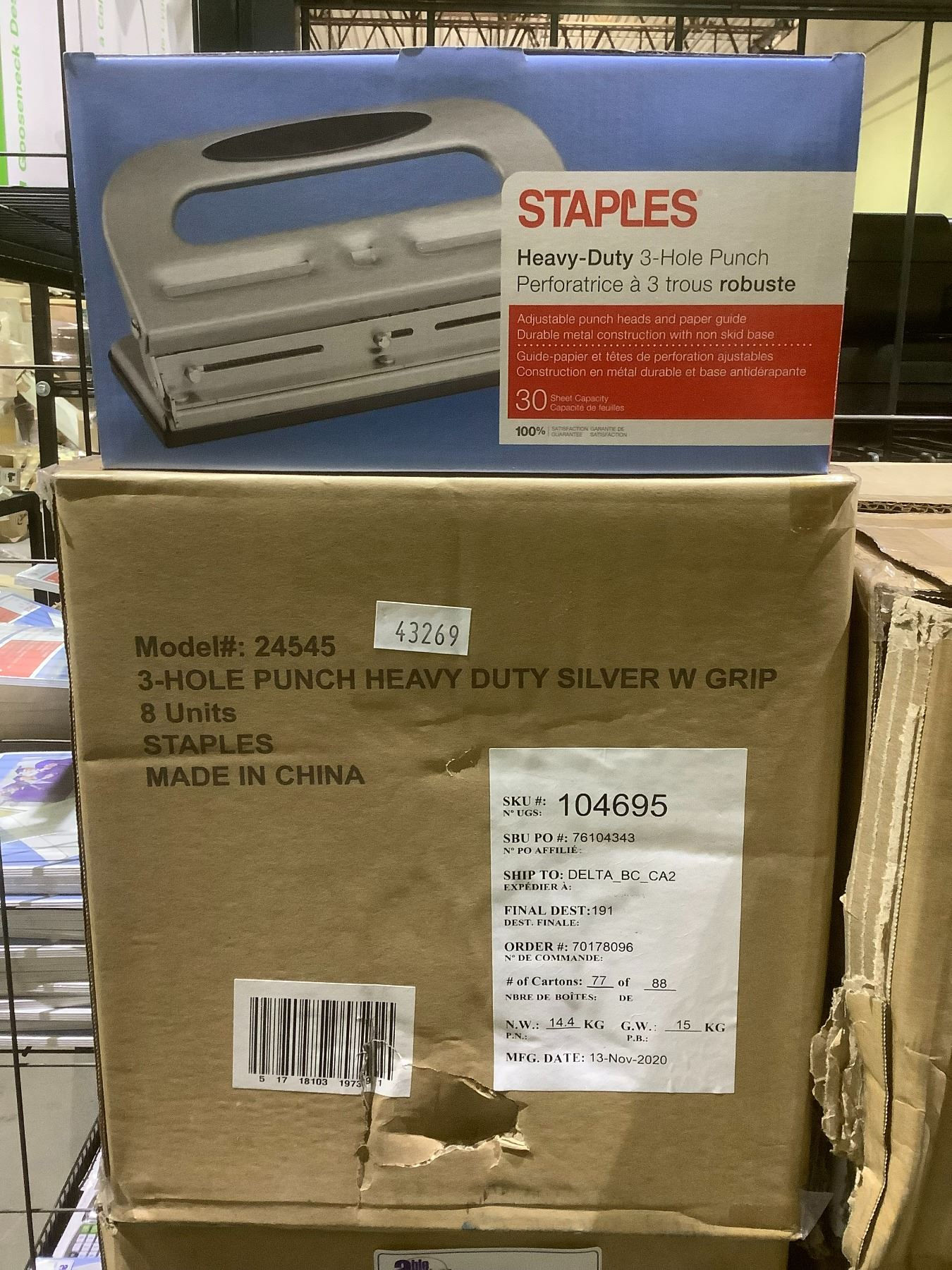 CASE OF 8 STAPLES HEAVY DUTY 3 HOLE PUNCH
