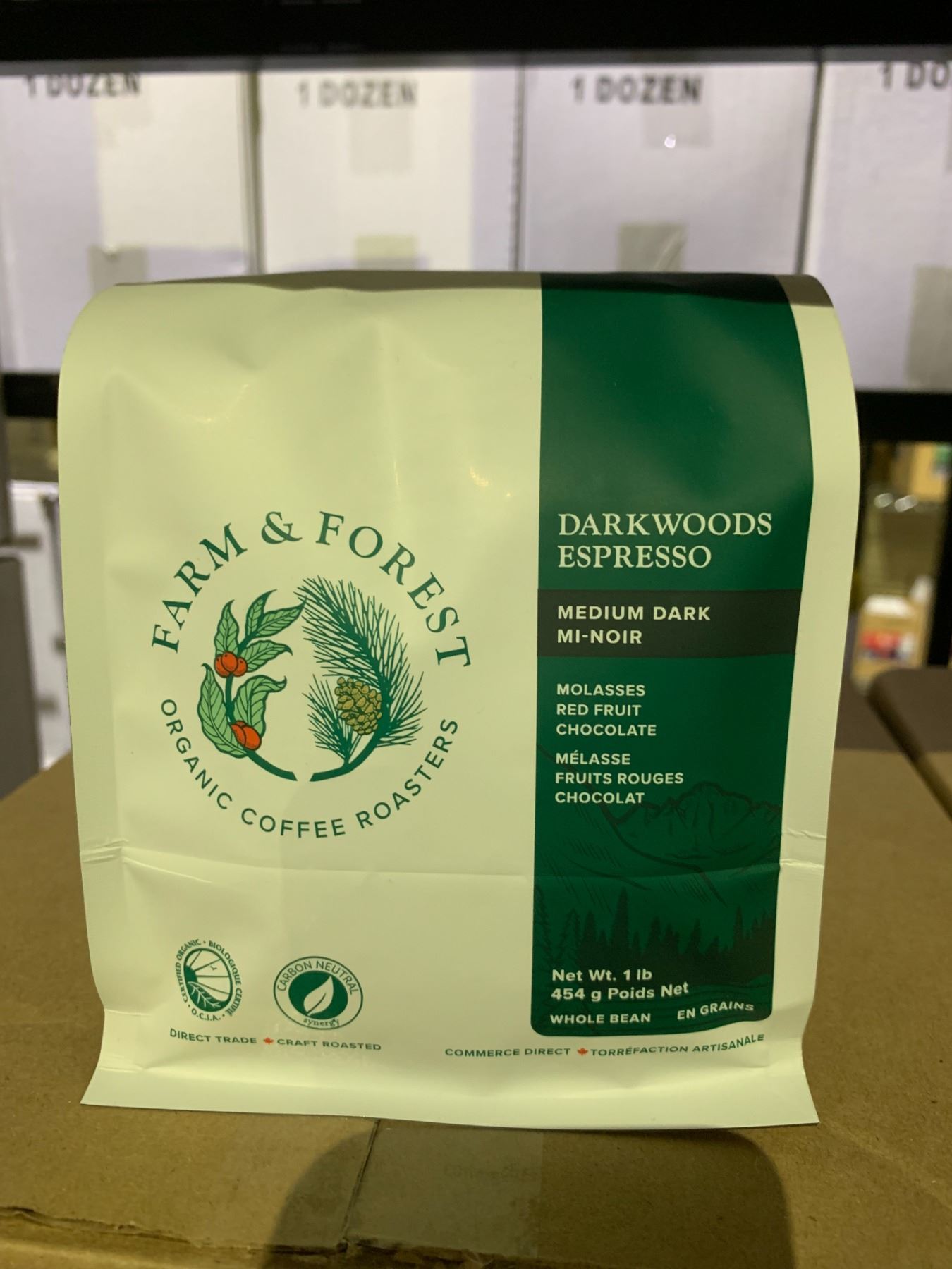 CASE OF FARM & FOREST DARKWOODS ORGANIC ESPRESSO (6 BAGS PER CASE)