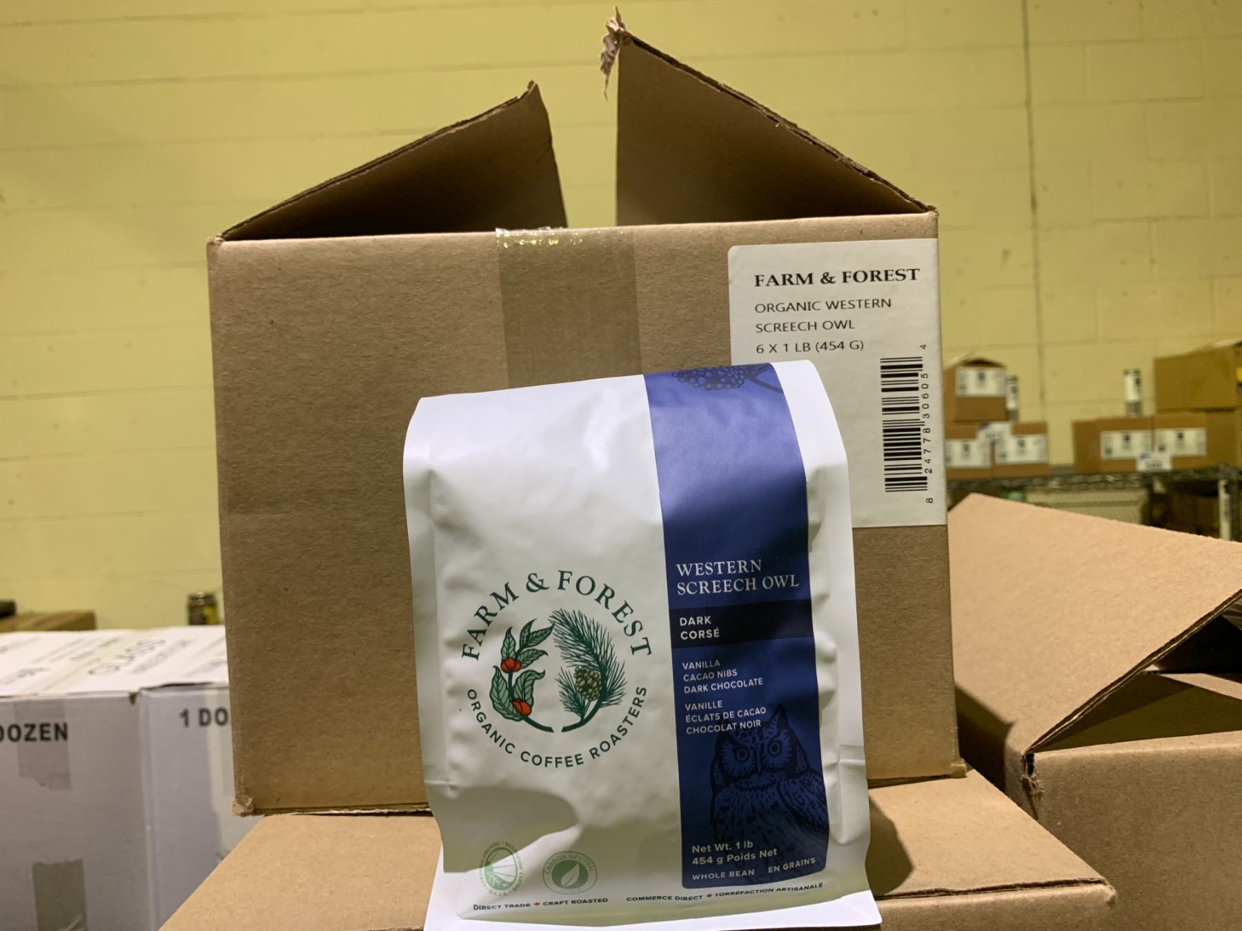 CASE OF FARM & FOREST WESTERN SCREECH OWL DARK ROAST COFFEE (6 BAGS PER CASE)