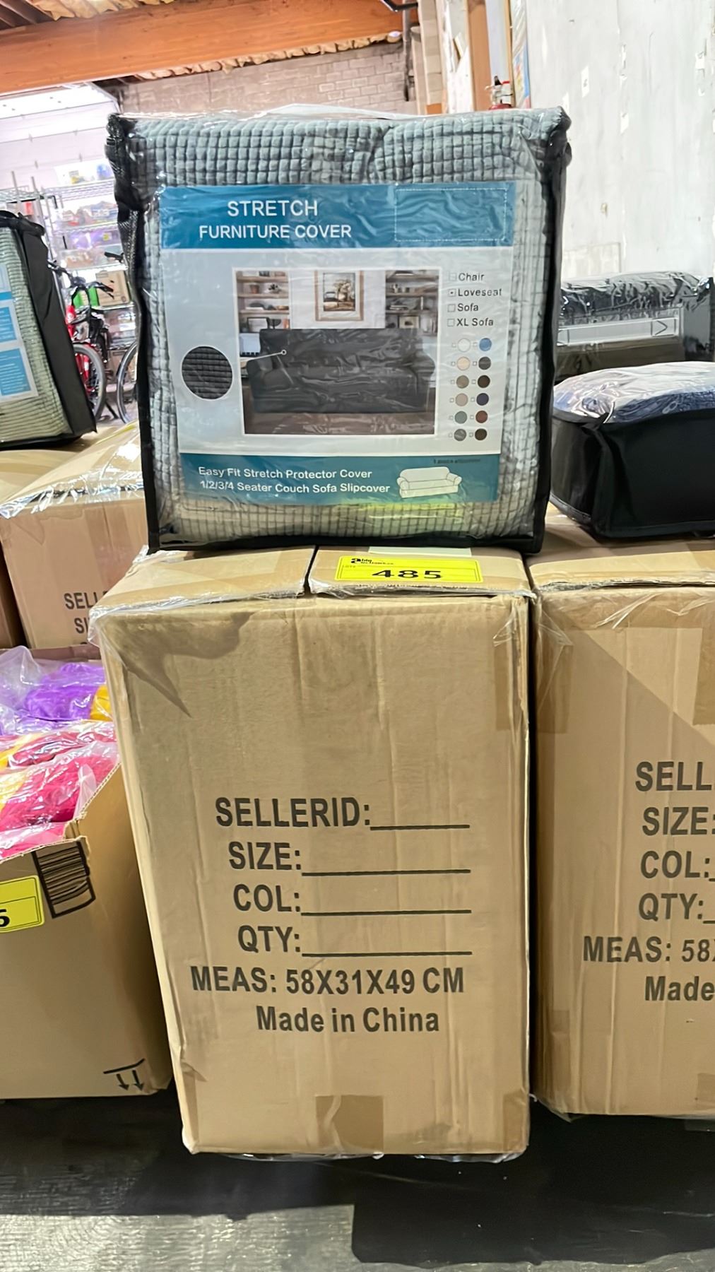 CASE OF LIGHT GREY STRETCH LOVESEAT COVERS