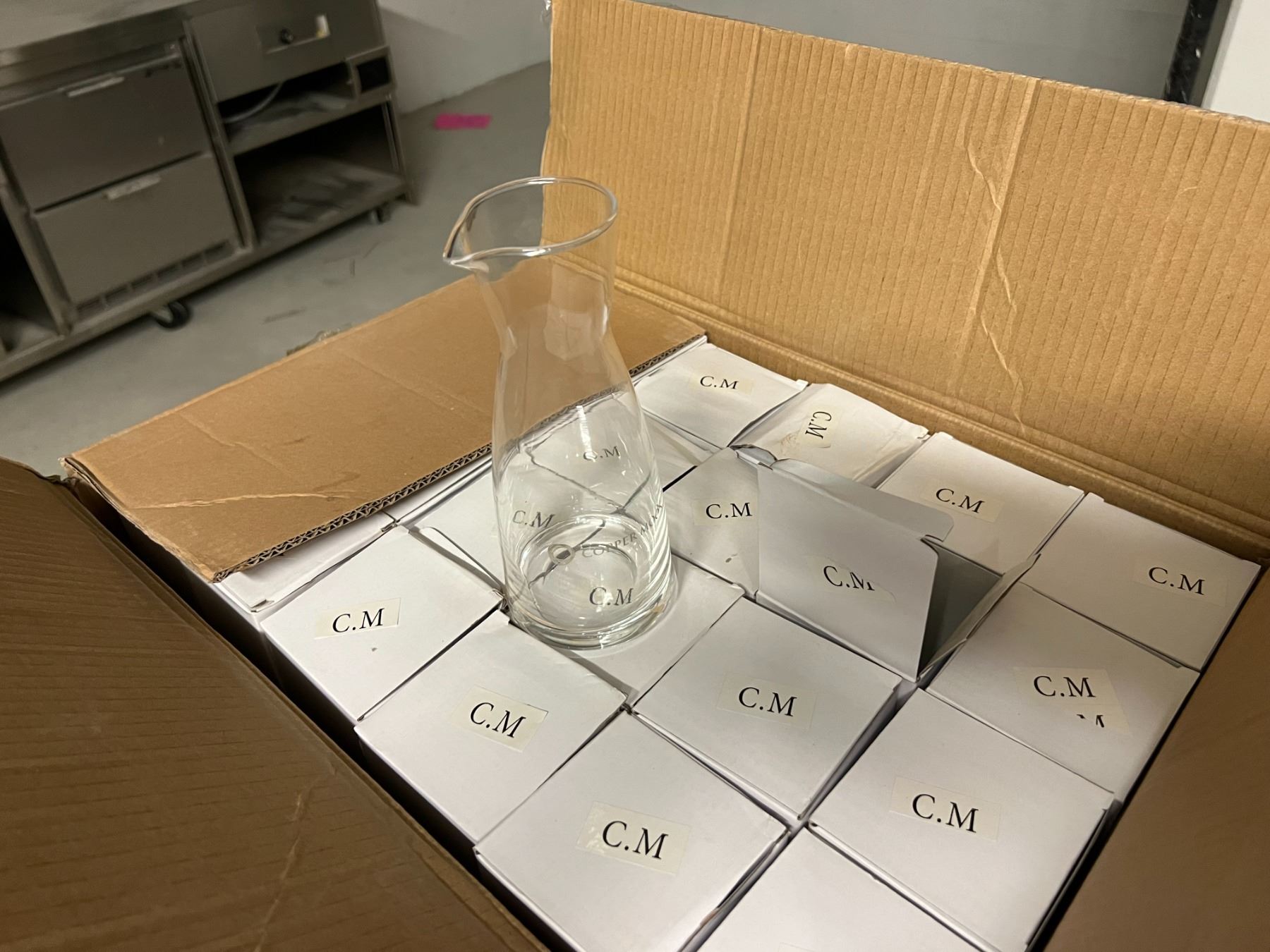 CASE OF NEW IN BOX 500 ML GLASS CARAFE'S-24 PIECES
