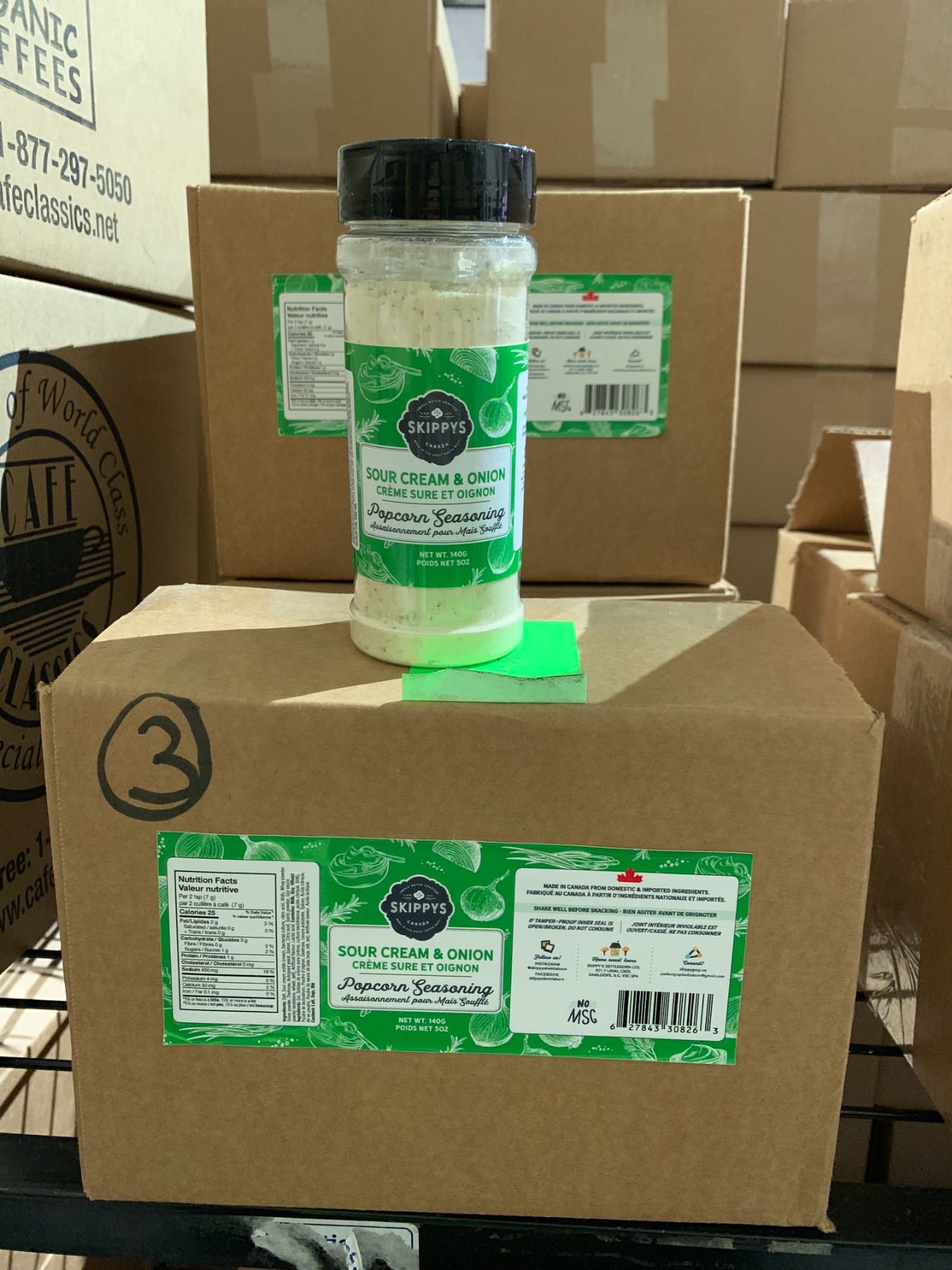 CASE OF SKIPPYS SOUR CREAM & ONION POPCORN SEASONING (12 BOTTLES PER CASE)