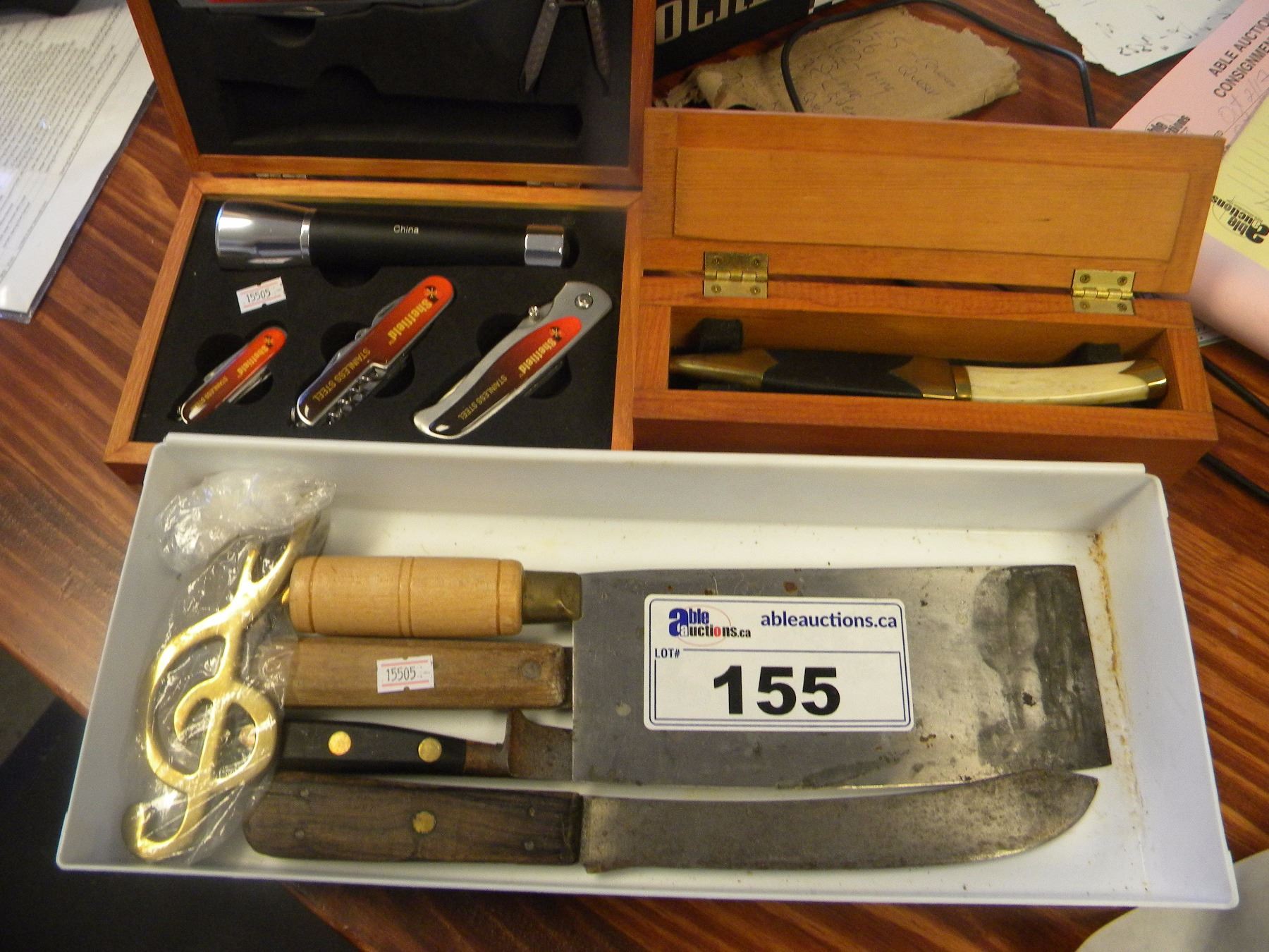 CASED KNIFE & PLIER SET, CASED LETTER OPENER, MISC KNIVES, CLEAVER, ETC