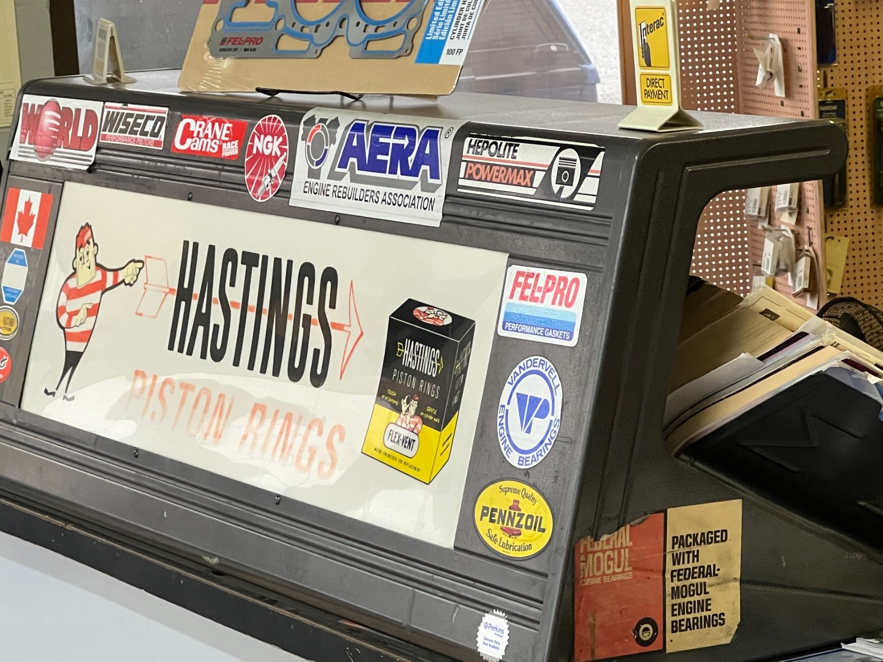 CATALOG DISPLAY RACKS, HASTINGS PISTON LOGO.