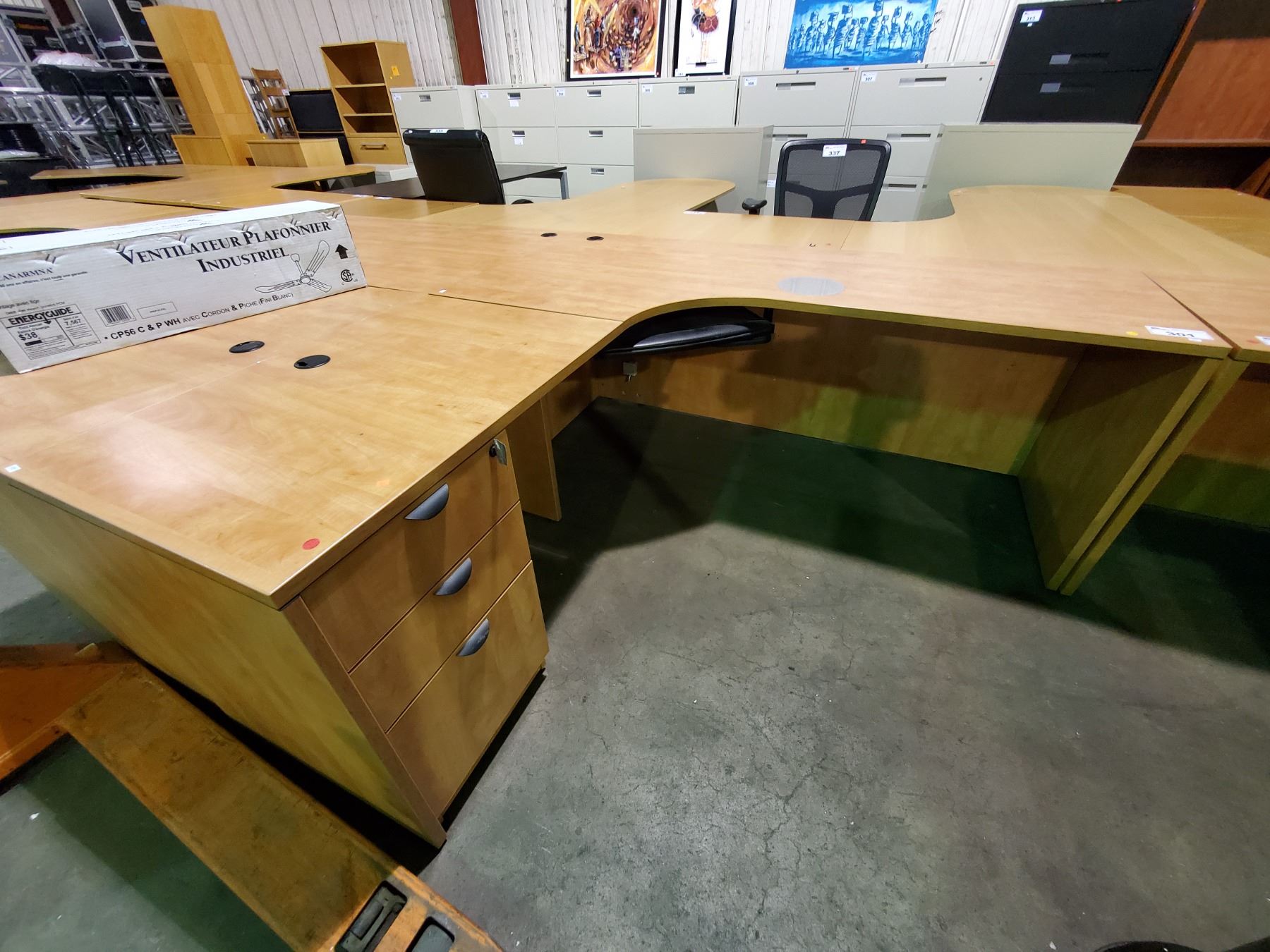 CEDAR COLOURED 2 PIECE L-SHAPED DESK WITH 3 DRAWERS