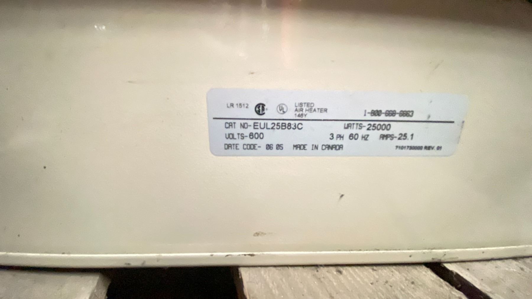 CEILING MOUNT ELECTRIC SHOP HEATER 600V 3 PHASE 25,000 WATTS MADE IN CANADA MODEL EUL25B83C