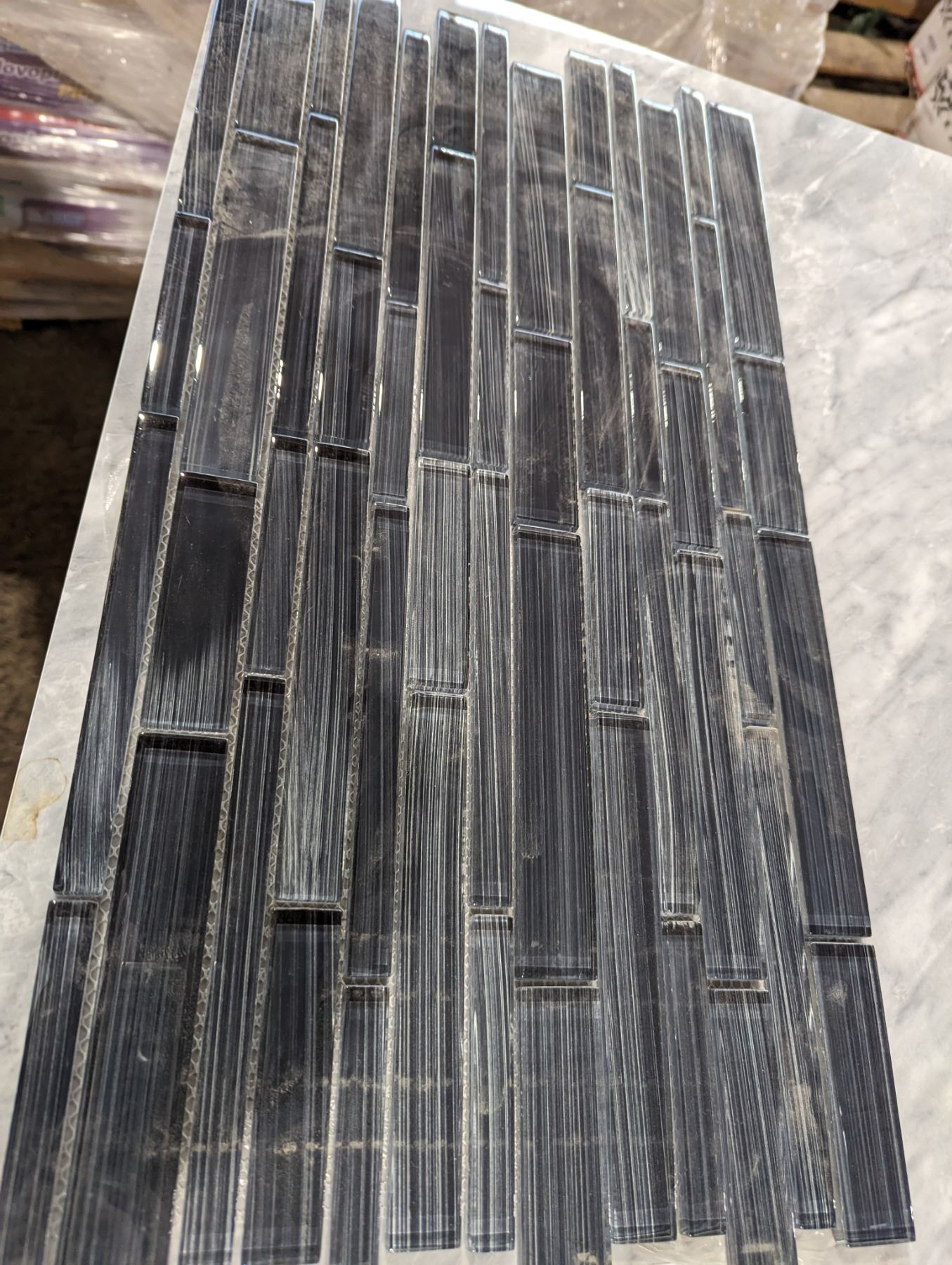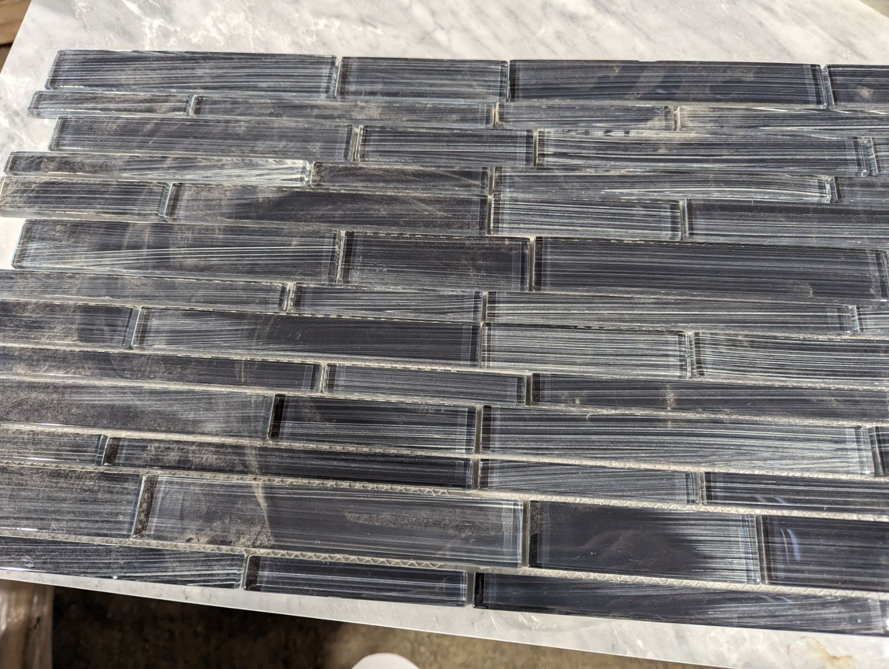 CENTURA CHARCOAL GREY GLASS MOSAIC 5 SQ FT PER BOX X 10 BOXES TOTAL COVERAGE 50 SQ FT