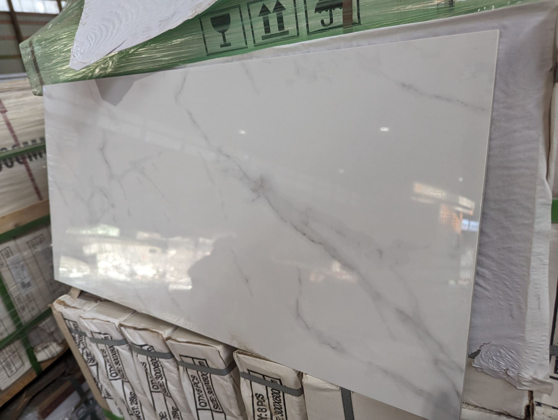 CERAMIC TILE - "POLISHED CARRARA" 1' X 2' X 8PCS X 16 SQ FT PER BOX X 52 BOXES - TOTAL COVERAGE APPROX 832 SQ FT TOTAL WEIGHT 3200 LBS