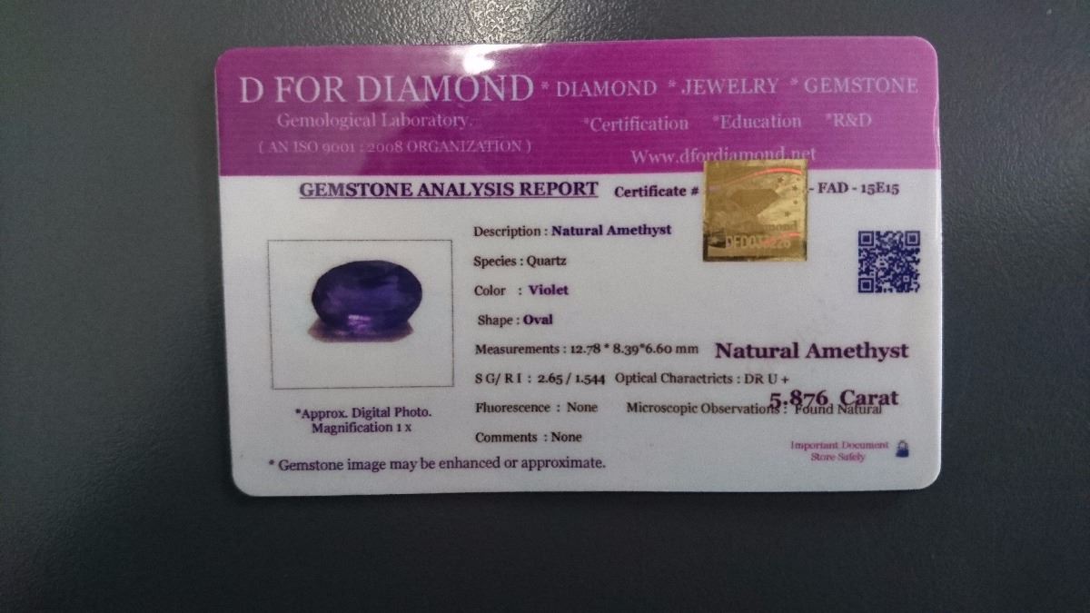 CERTIFIED 5.87CT PURPLE AMETHYST GEMSTONE. OVAL CUT. INCLUDES GEMSTONE ANALYSIS REPORT. RETAIL VALUE $300