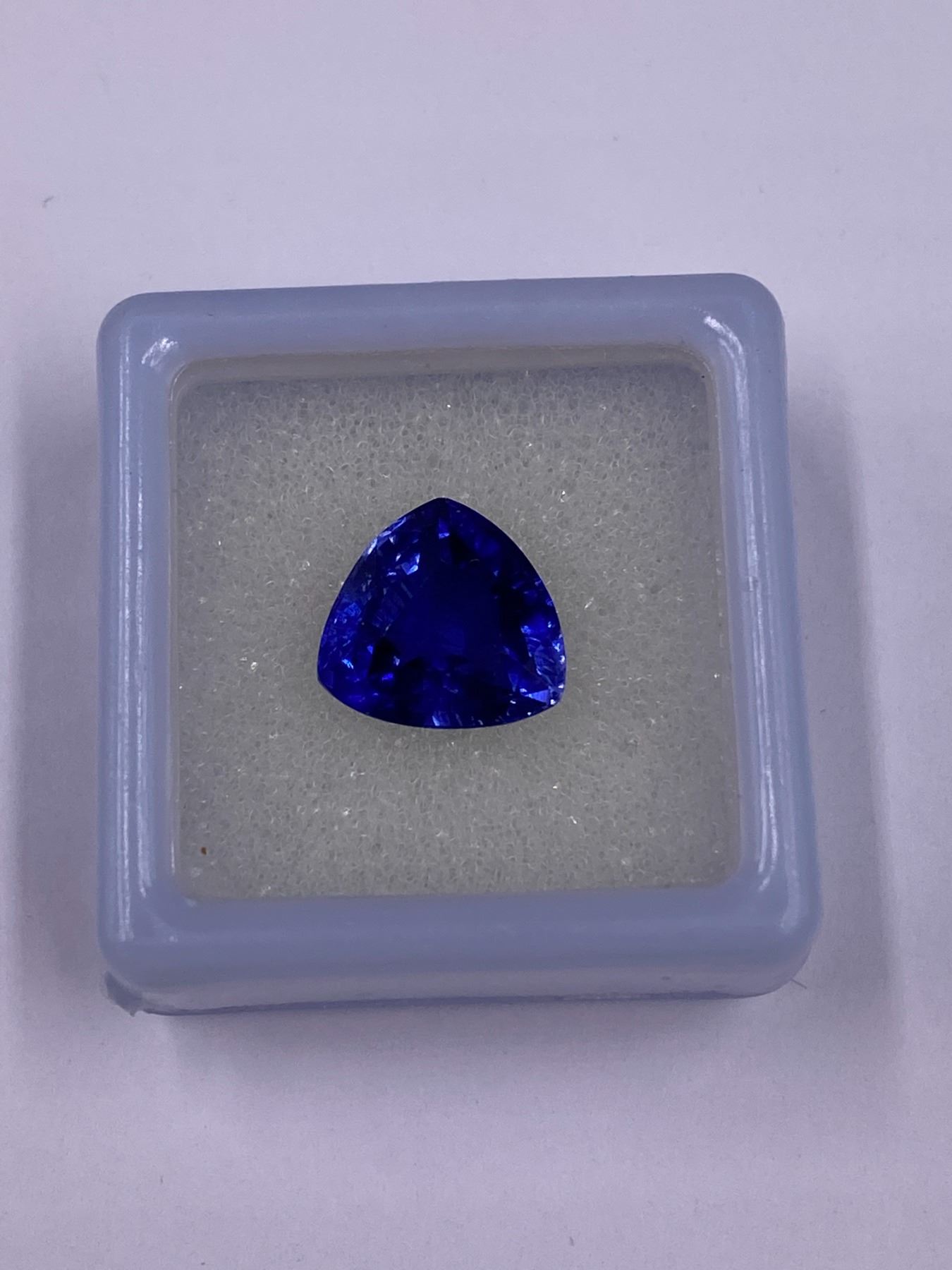 CEYLON BLUE SAPPHIRE LAB CREATED 5.60CT, 10.30 X 10.30 X 6.40MM, TRILLIAN CUT, IF LOUPE CLEAN CLARITY
