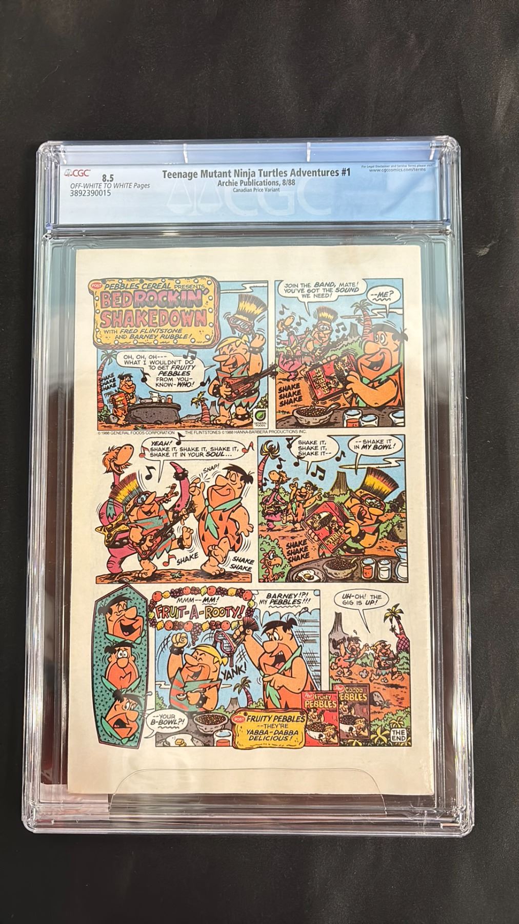 CGC 8.5 ARCHIE PUBLICATIONS TEENAGE MUTANT NINJA TURTLES ADVENTURES #1 CANADIAN PRICE VARIANT COMIC BOOK