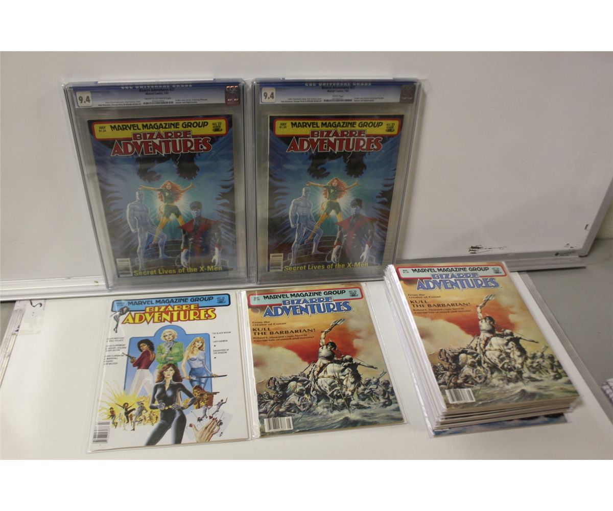 CGC BIZARRE ADVENTURES RUN + DUPLICATES (MARVEL) 15 RAW COPIES BETWEEN #25-32 & 2 CGC 9.4 (NM) COPIES OF #27 (X-MEN) 7/81. HIGH GRADE AVERAGE.