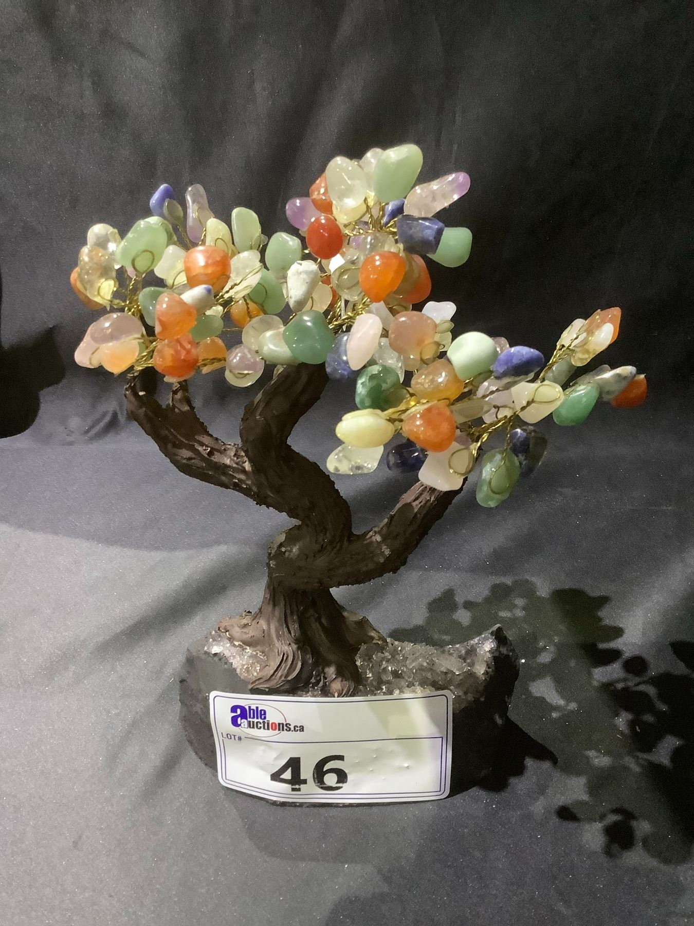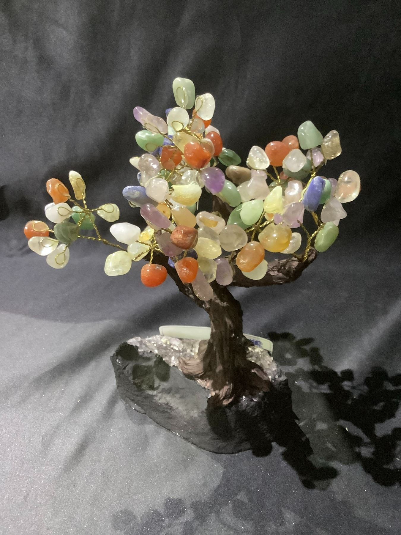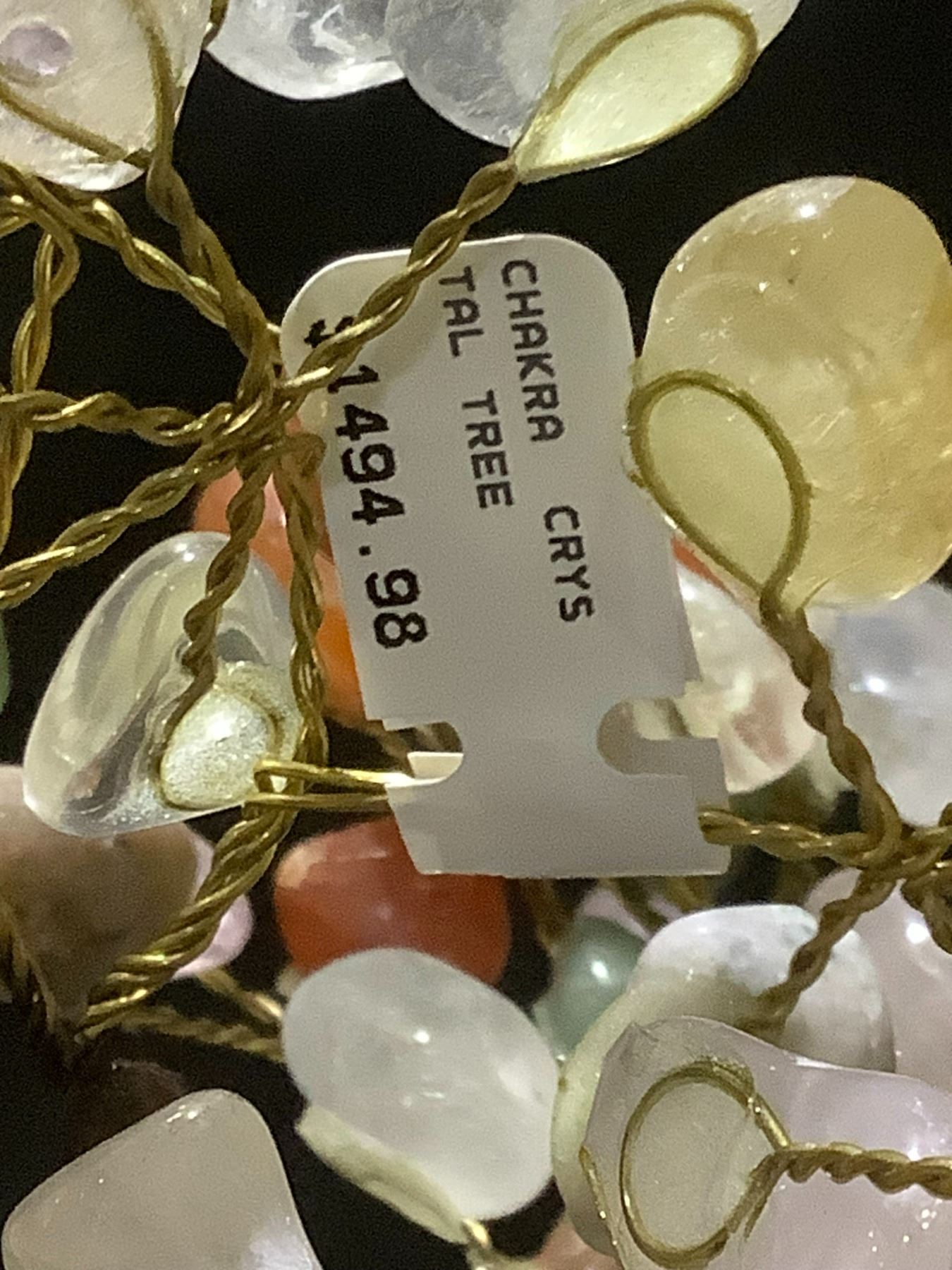 CHAKRA CRYSTAL TREE ON AMETHYST GEODE BASE APPROX 10" TALL- RETAIL $1494.98