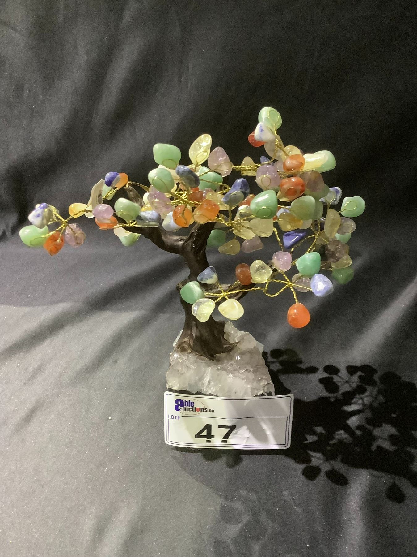 CHAKRA CRYSTAL TREE ON AMETHYST GEODE BASE APPROX 10" TALL- RETAIL $1494.98