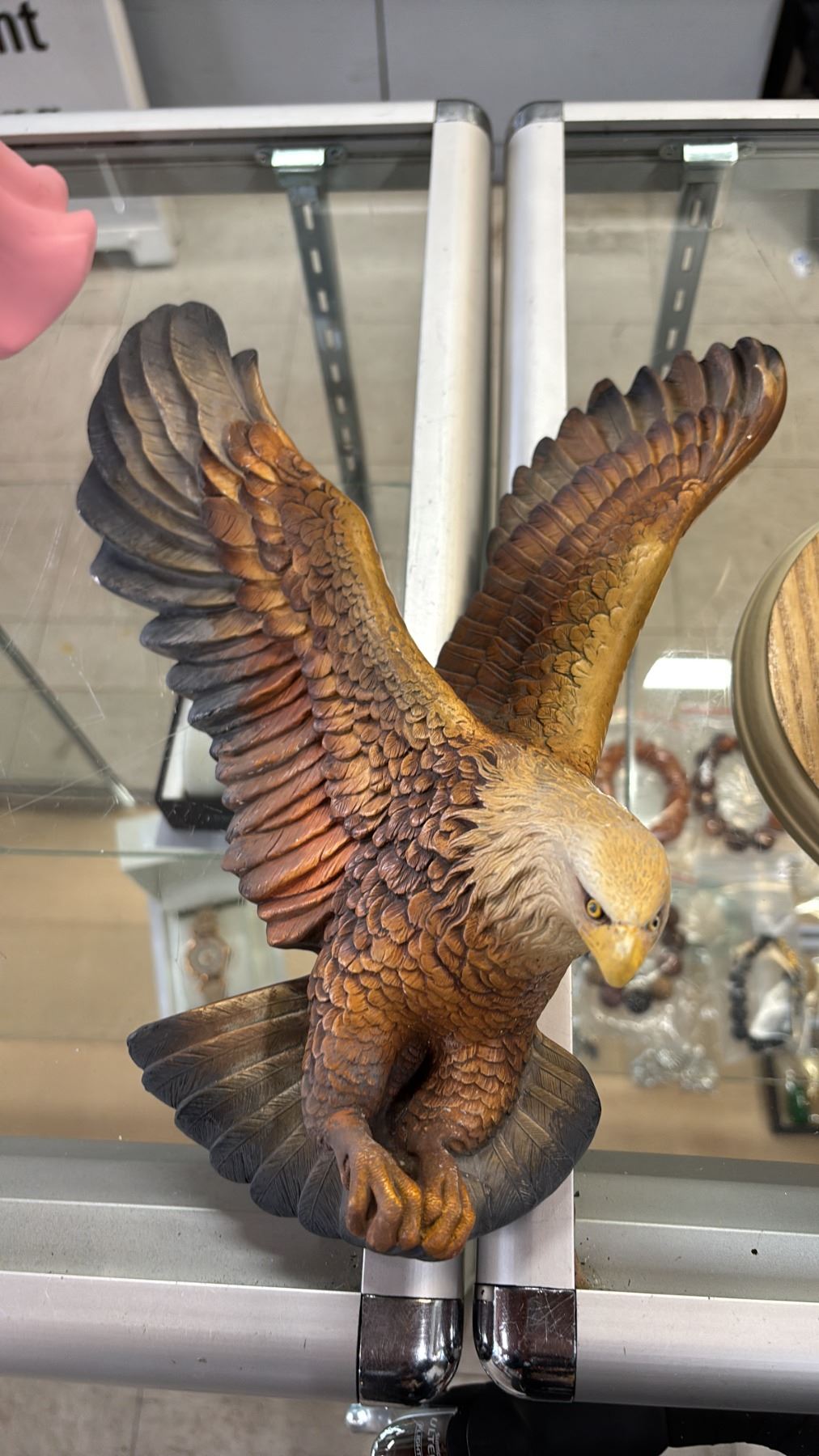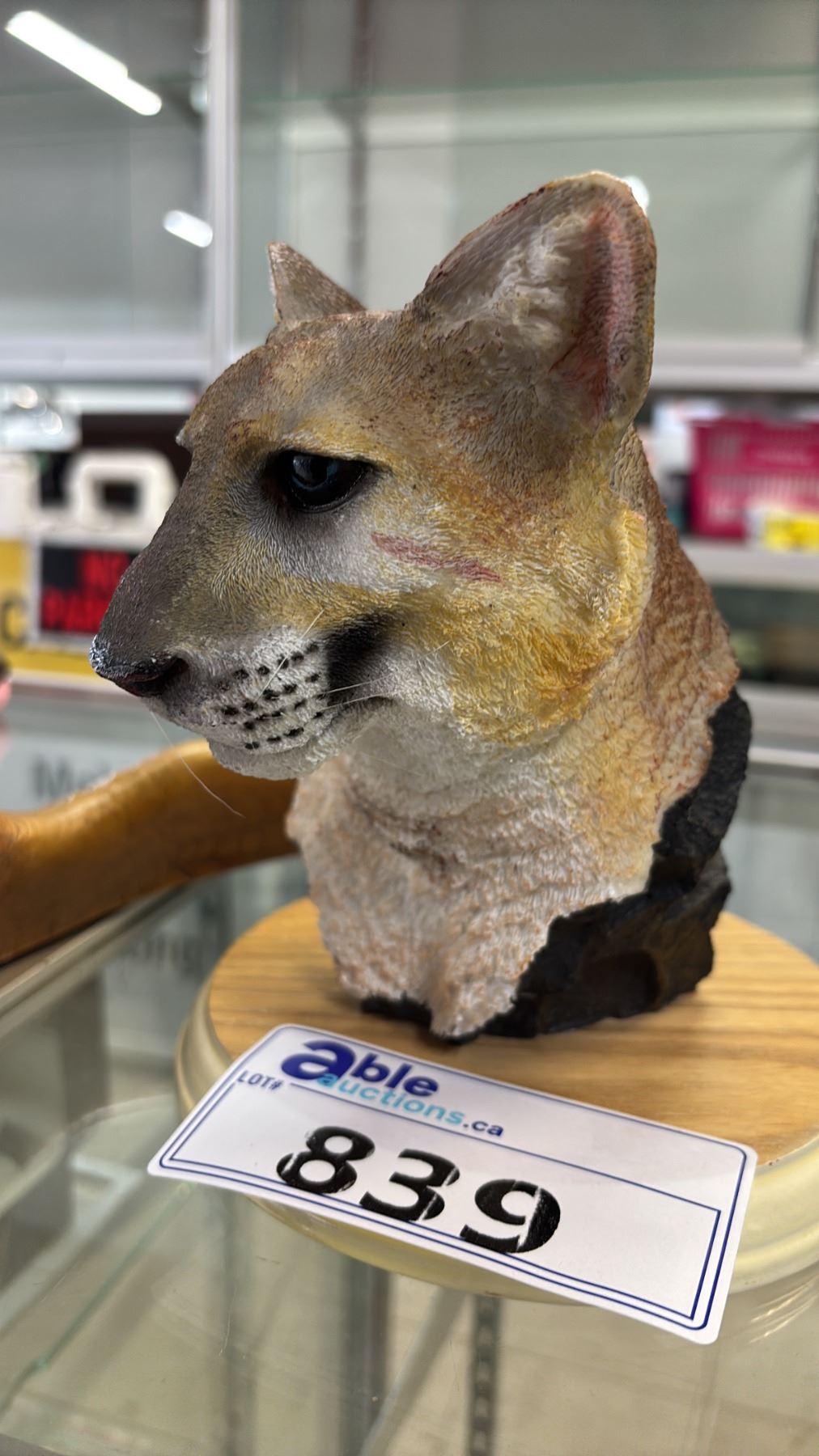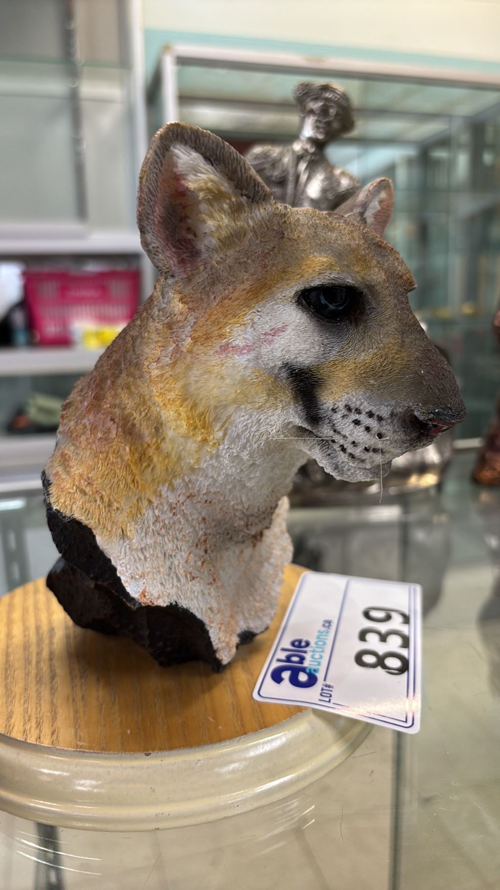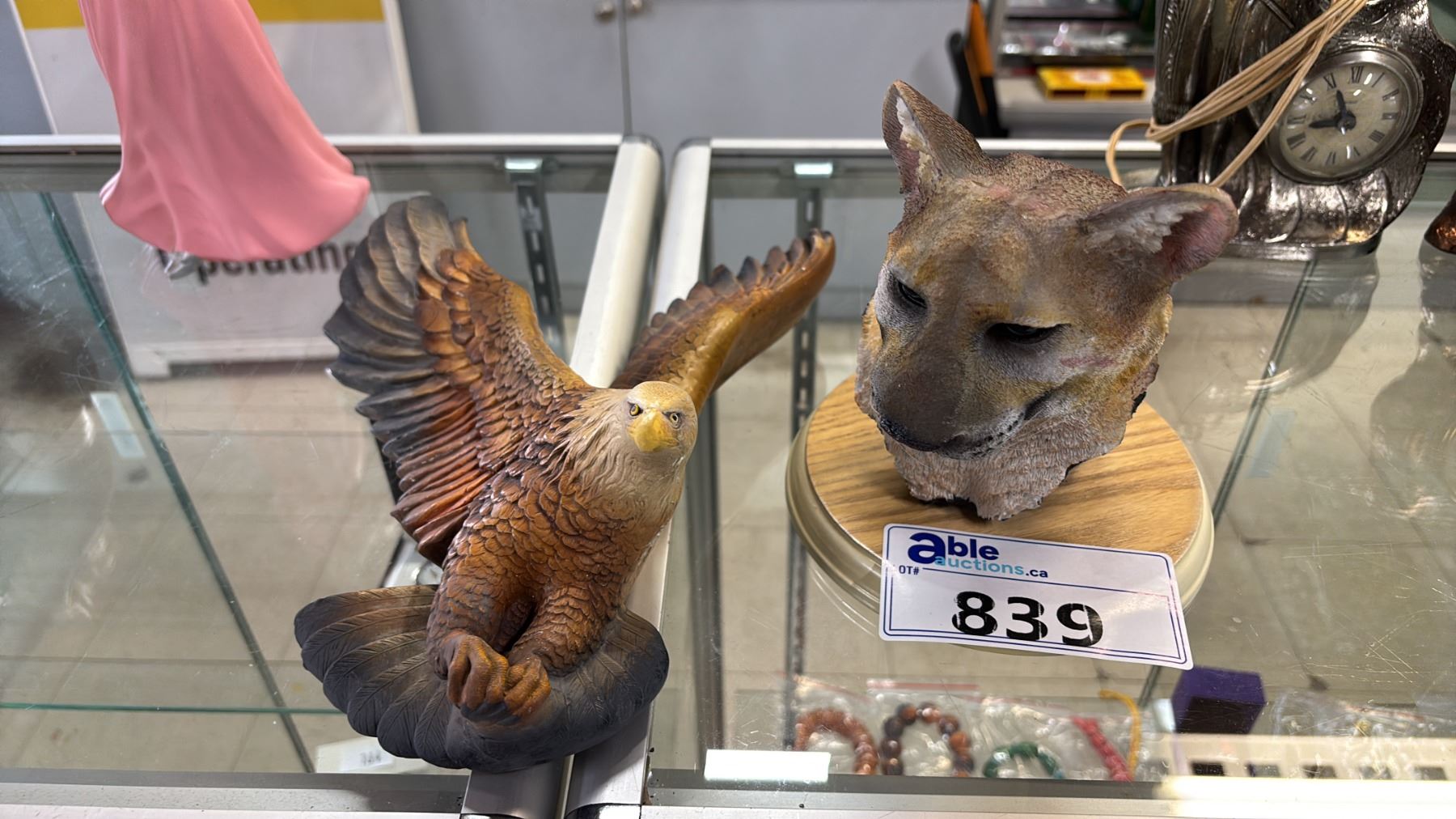 CHALKWARE EAGLE & DECORATIVE COUGAR HEAD SCULPTURE