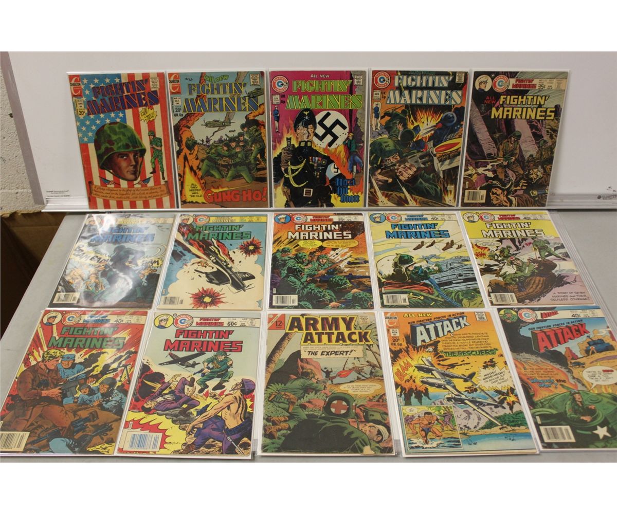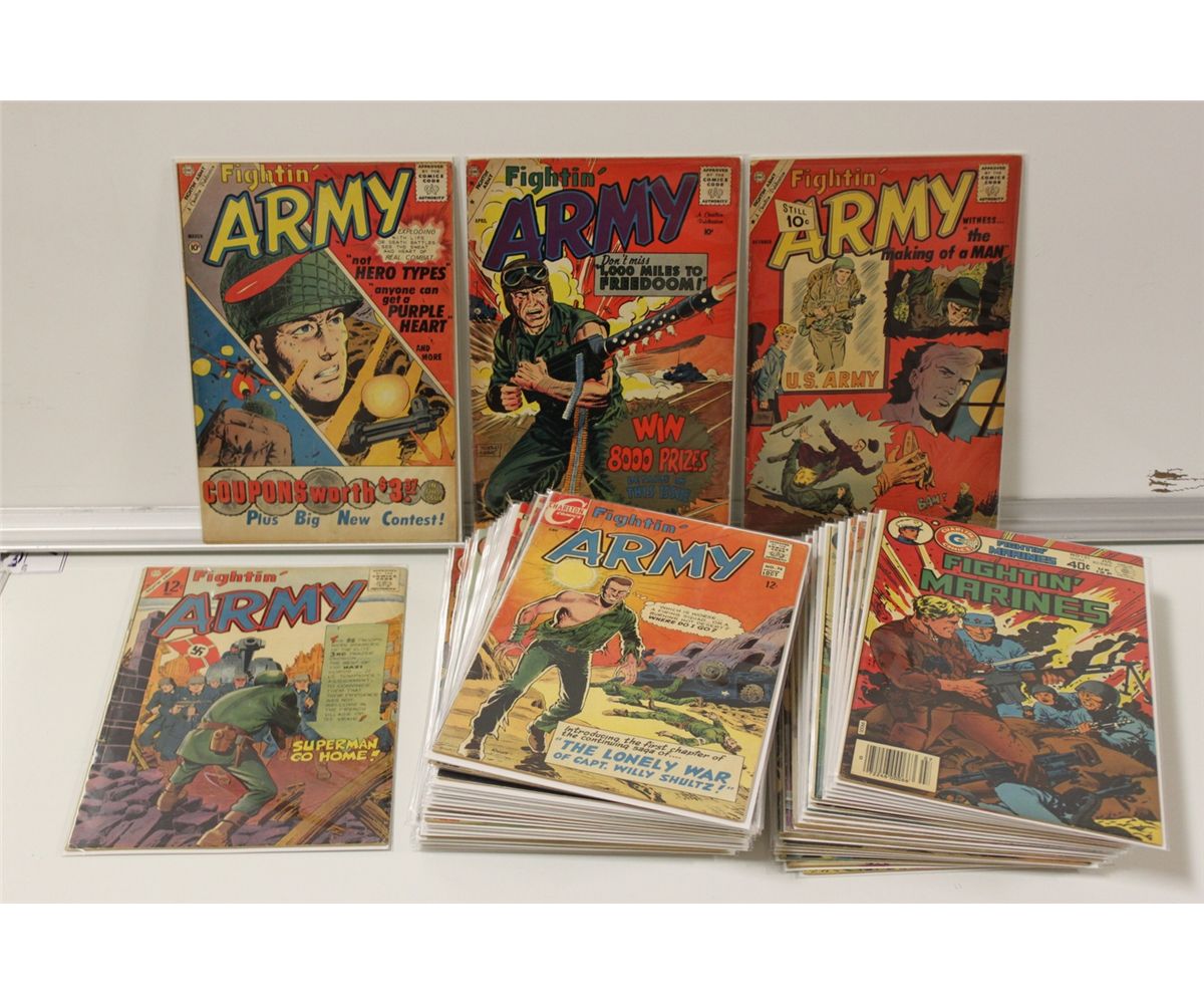 CHARLTON WAR SILVER/BRONZE LOT.  44 CLASSIC WAR ISSUES (1960'S-70'S) FIGHTIN'  ARMY, FIGHTIN' MARINES, ETC.  MIXED GRADES.