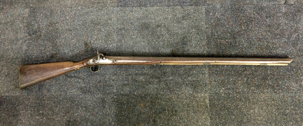 CHASSEPOT 1866 MUSKET, FRENCH MILITARY MUSKET 11MM CALIBRE NEEDLE FIRE CARTRIDGE, 32" BARREL, GOOD BORE. MARKED ROBERT HUGHES MAKER (PROBABLY RETAILER), BRITISH PROOFS, RAMROD, GOOD BORE. CIRCA 1870, GOOD CONDITION