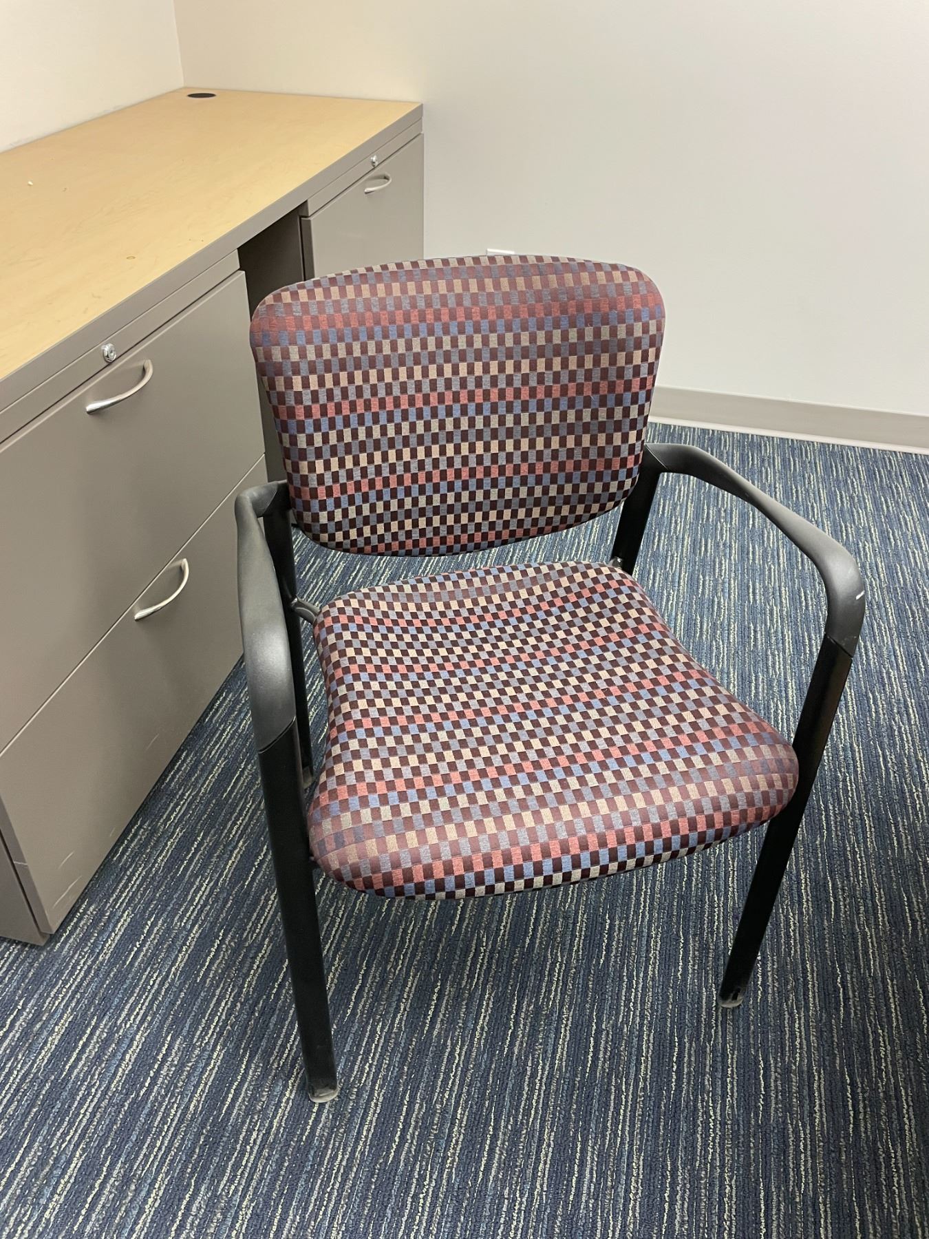 CHECKERED PATTERNED OFFICE STACKING ARM CHAIR