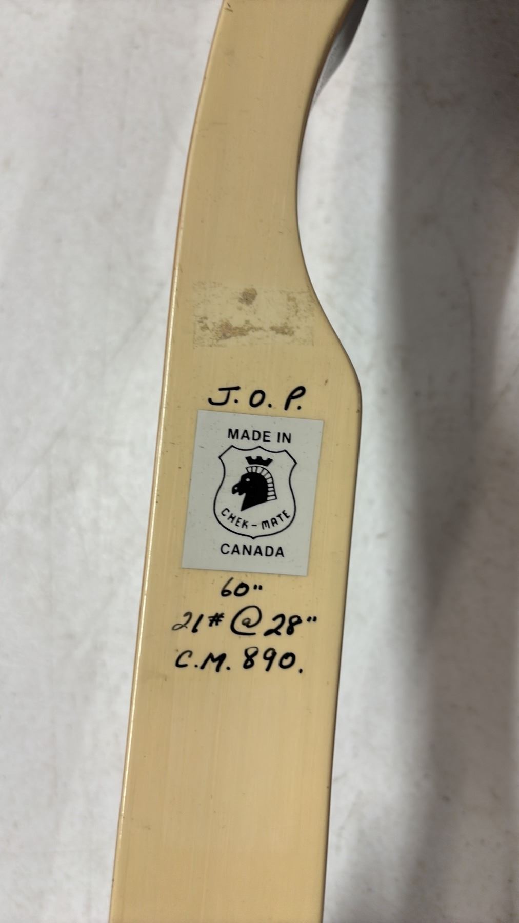 CHEK-MATE J.O.B. 60" RECURVE BOW WITH BUNDLE OF ARROWS: 60LB DRAW WEIGHT AT 28"