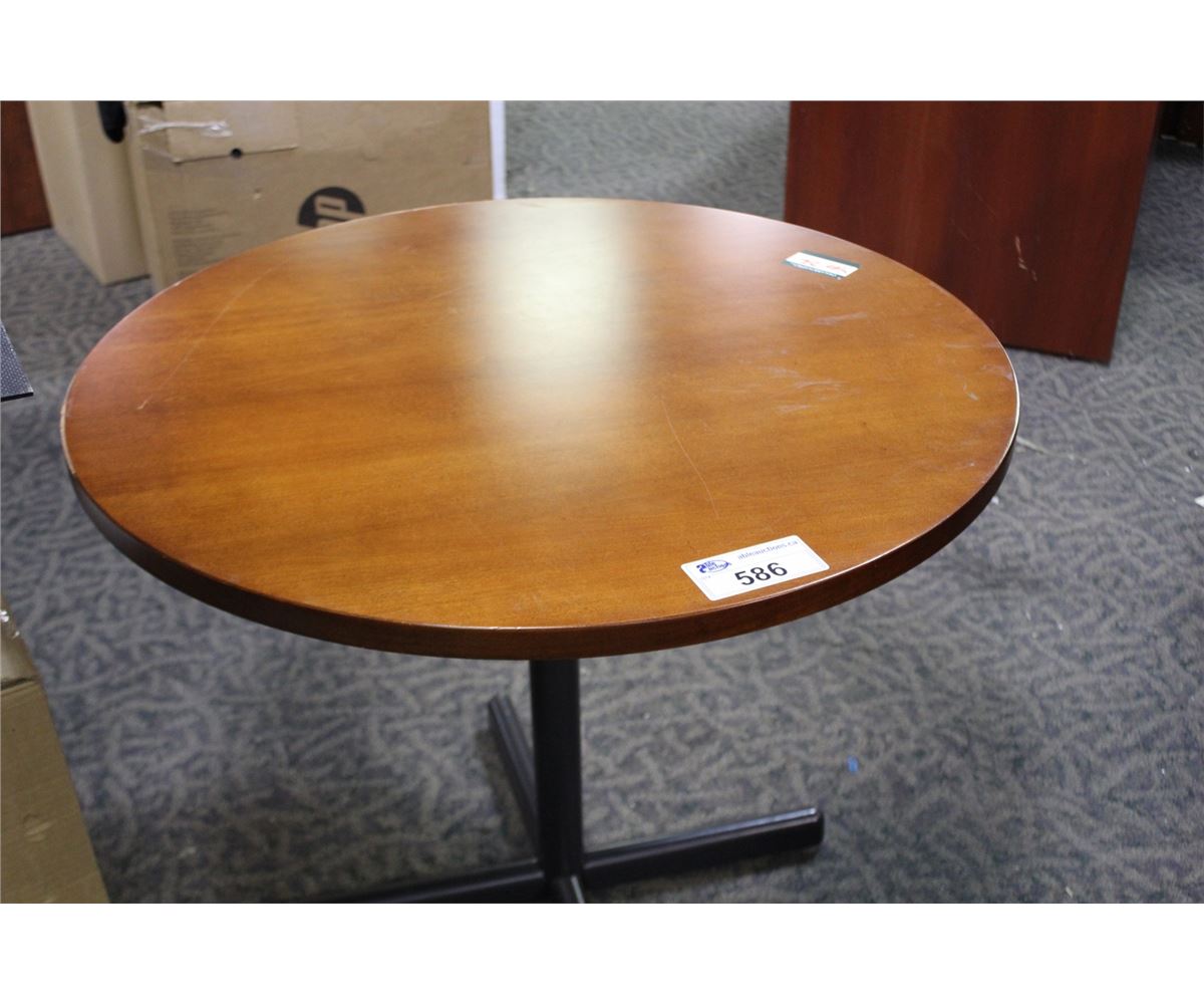 CHERRY 36'' ROUND TABLE, CHERRY 36'' BOOK CASE AND CHERRY ROUND END TABLE