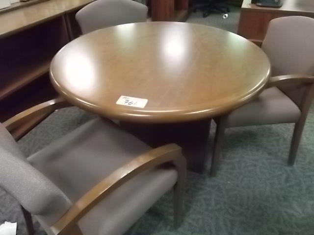 CHERRY 42" ROUND TABLE WITH 3 CHERRY CLIENT CHAIRS