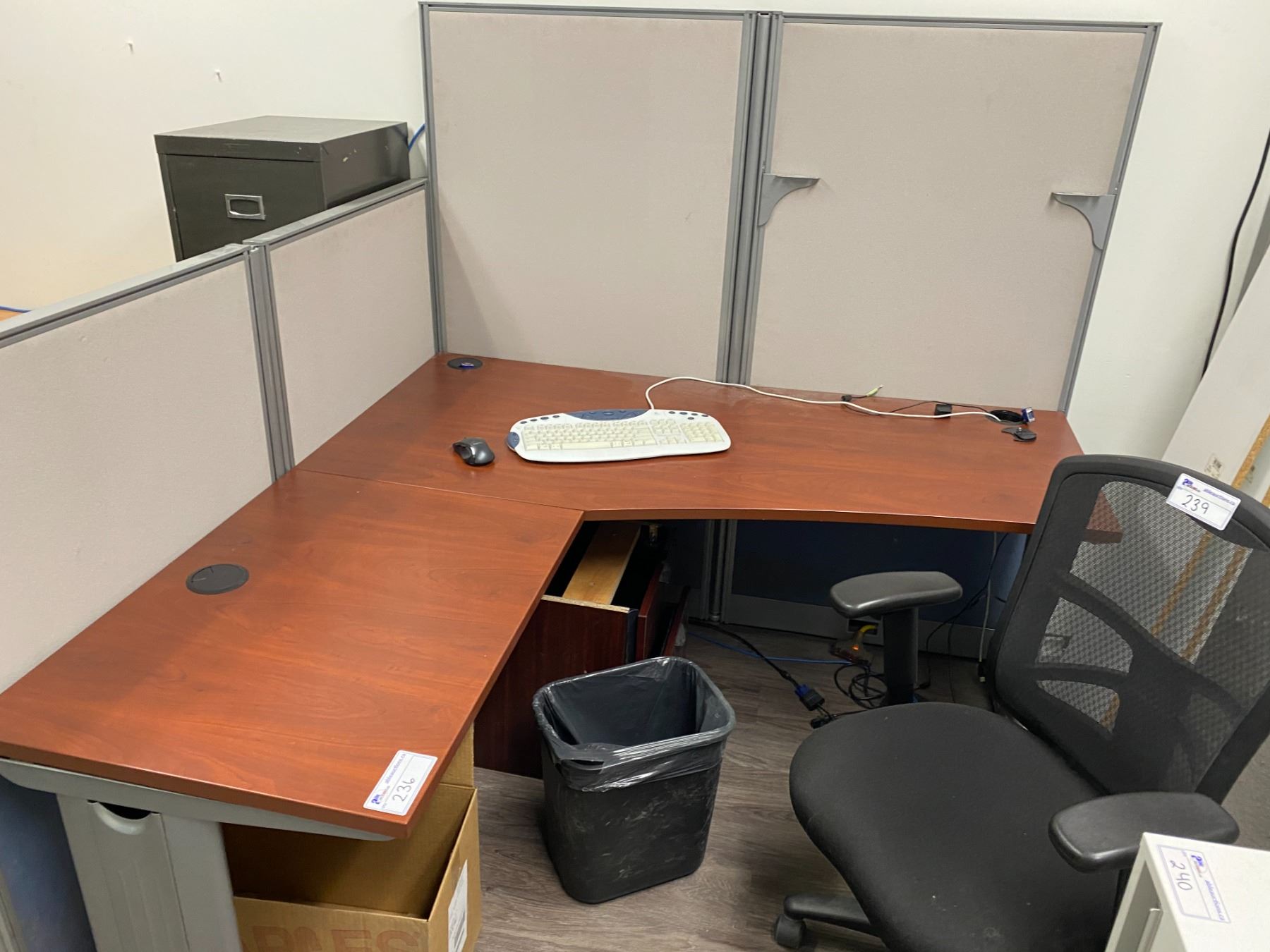 CHERRY 6' X 6' CORNER DESK WITH PRIVACY SCREENS