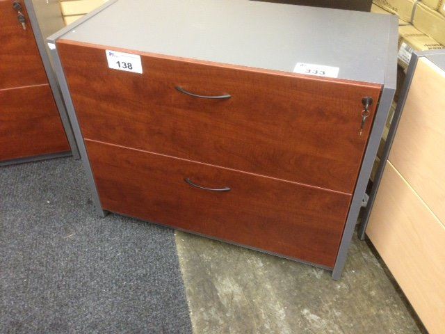 CHERRY AND STORM GREY 2 DRAWER LATERAL FILE CABINET