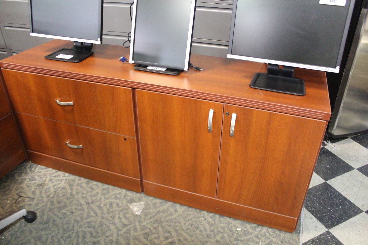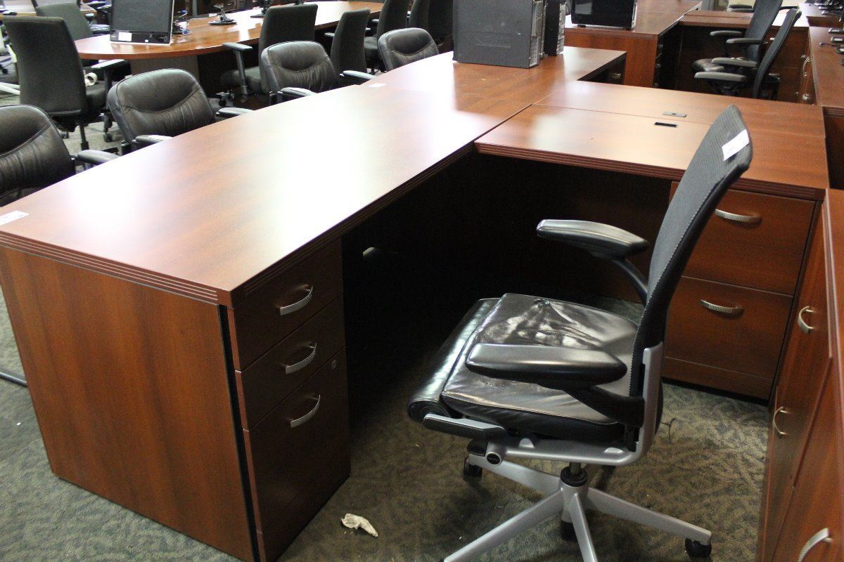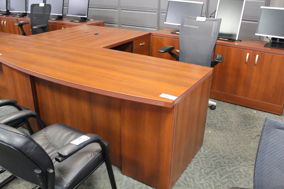 CHERRY BOW-FRONT BEVELED EDGE 6' L-SHAPE EXECUTIVE DESK COMES WITH 6' MATCHING CREDENZA (RH)