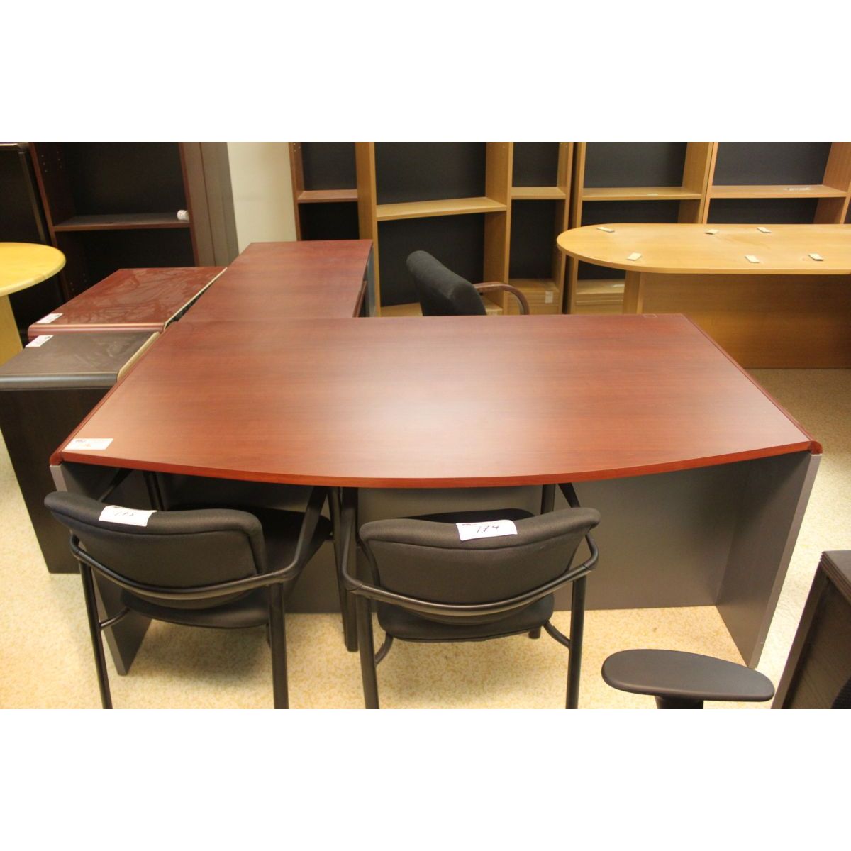 CHERRY BOW FRONT EXECUTIVE L-SHAPE DESK