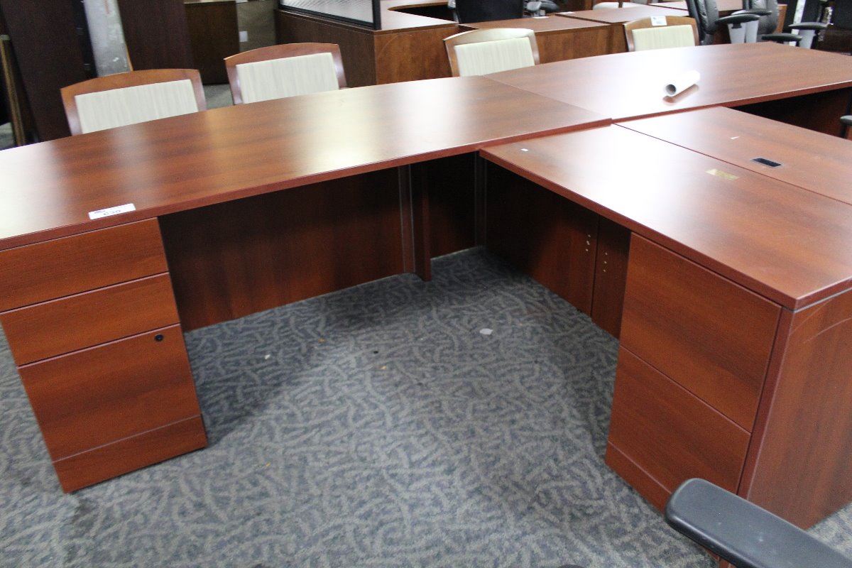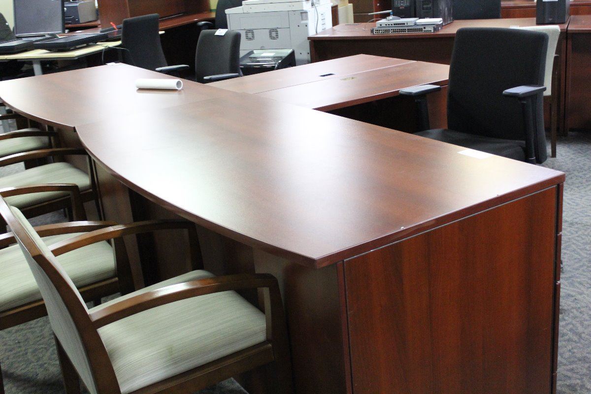 CHERRY BOW FRONT L-SHAPE EXECUTIVE DESK