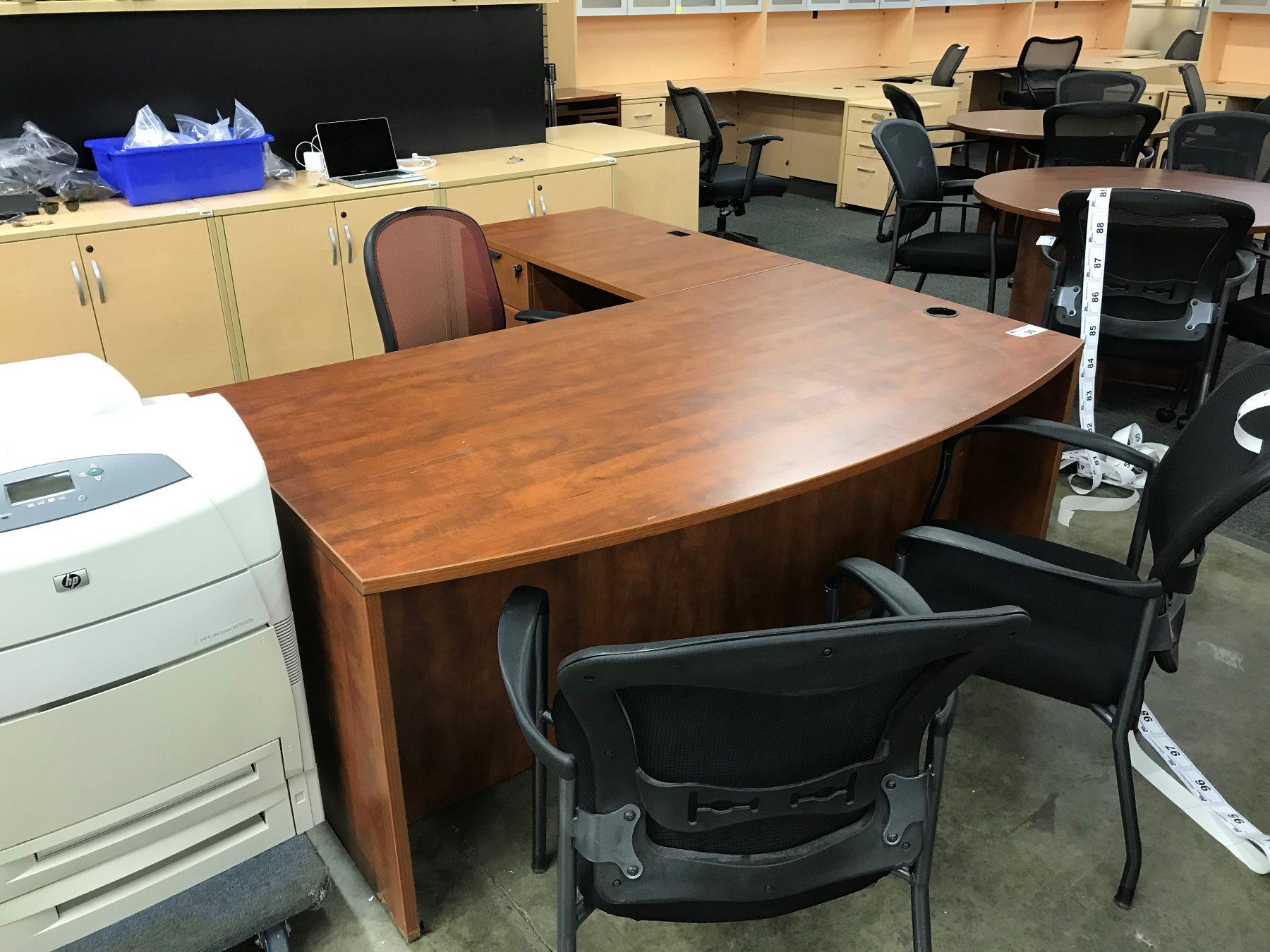 CHERRY BOW FRONT L-SHAPE EXECUTIVE DESK