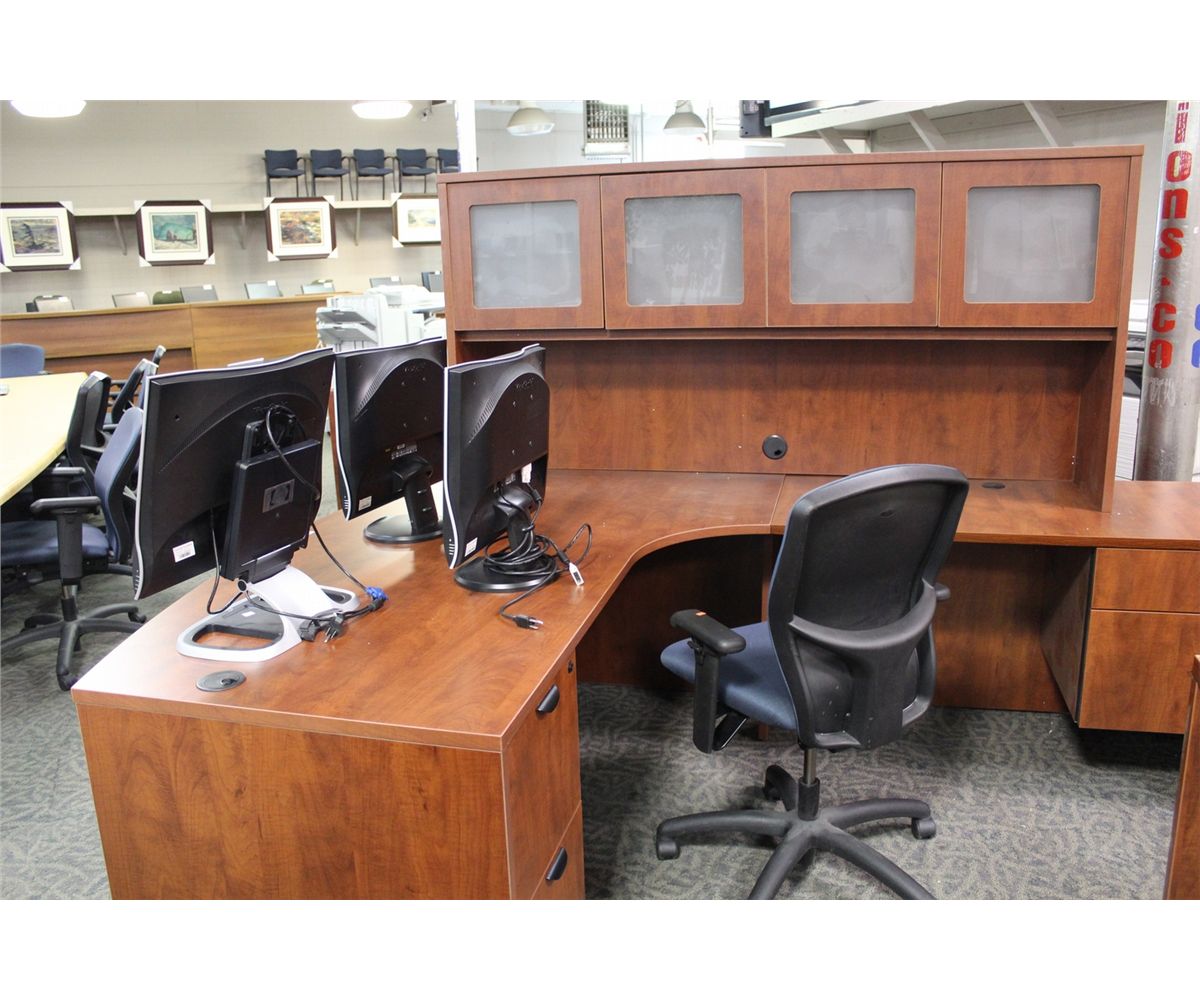 CHERRY BOW FRONT RH EXECUTIVE L-SHAPE DESK / HUTCH