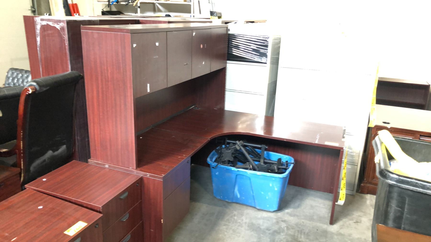 CHERRY CORNER OFFICE DESK W/ HUTCH D66" X W66" X H66"