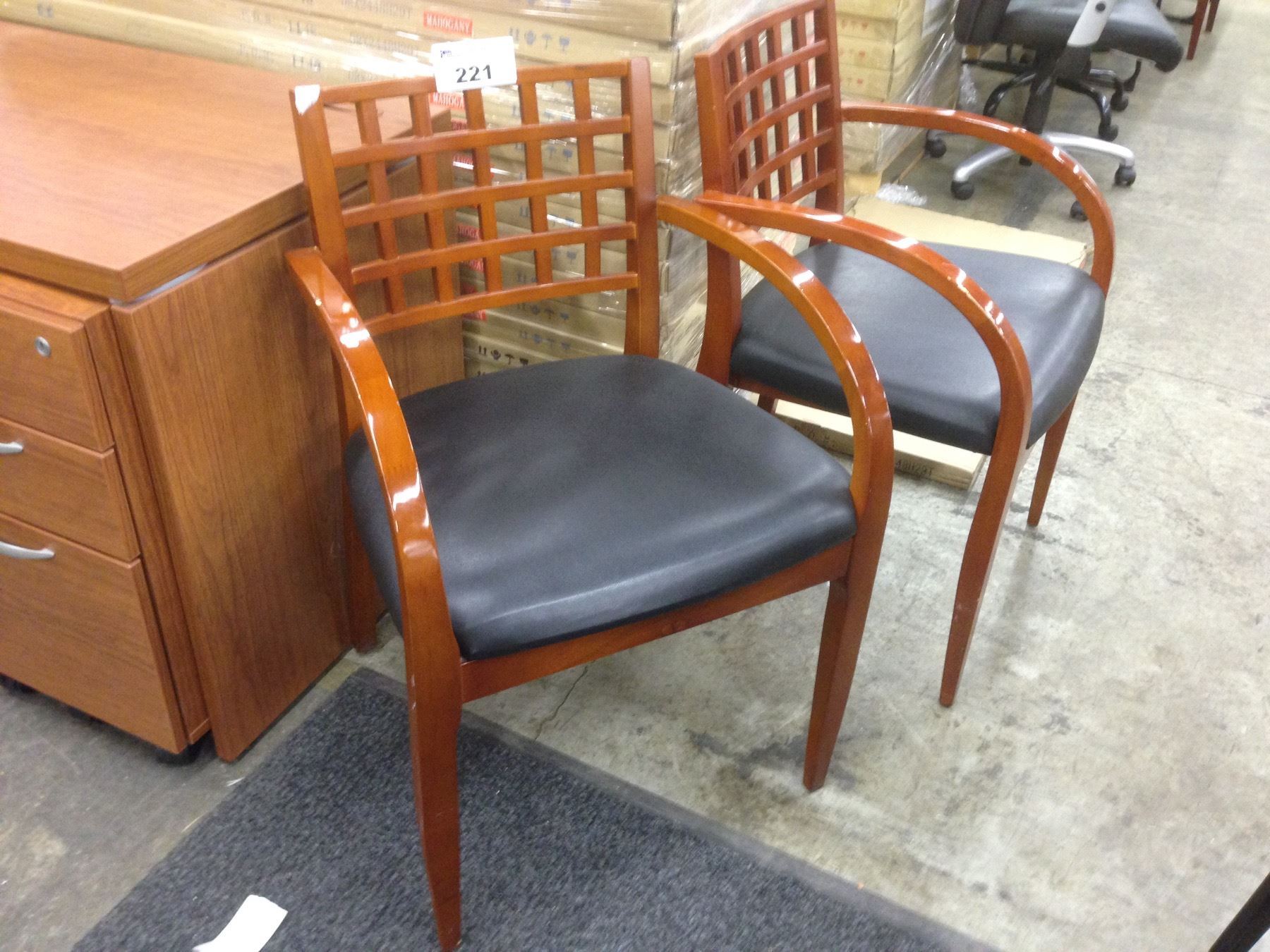 CHERRY FRAMED BLACK WAFFLE BACK CLIENT CHAIR