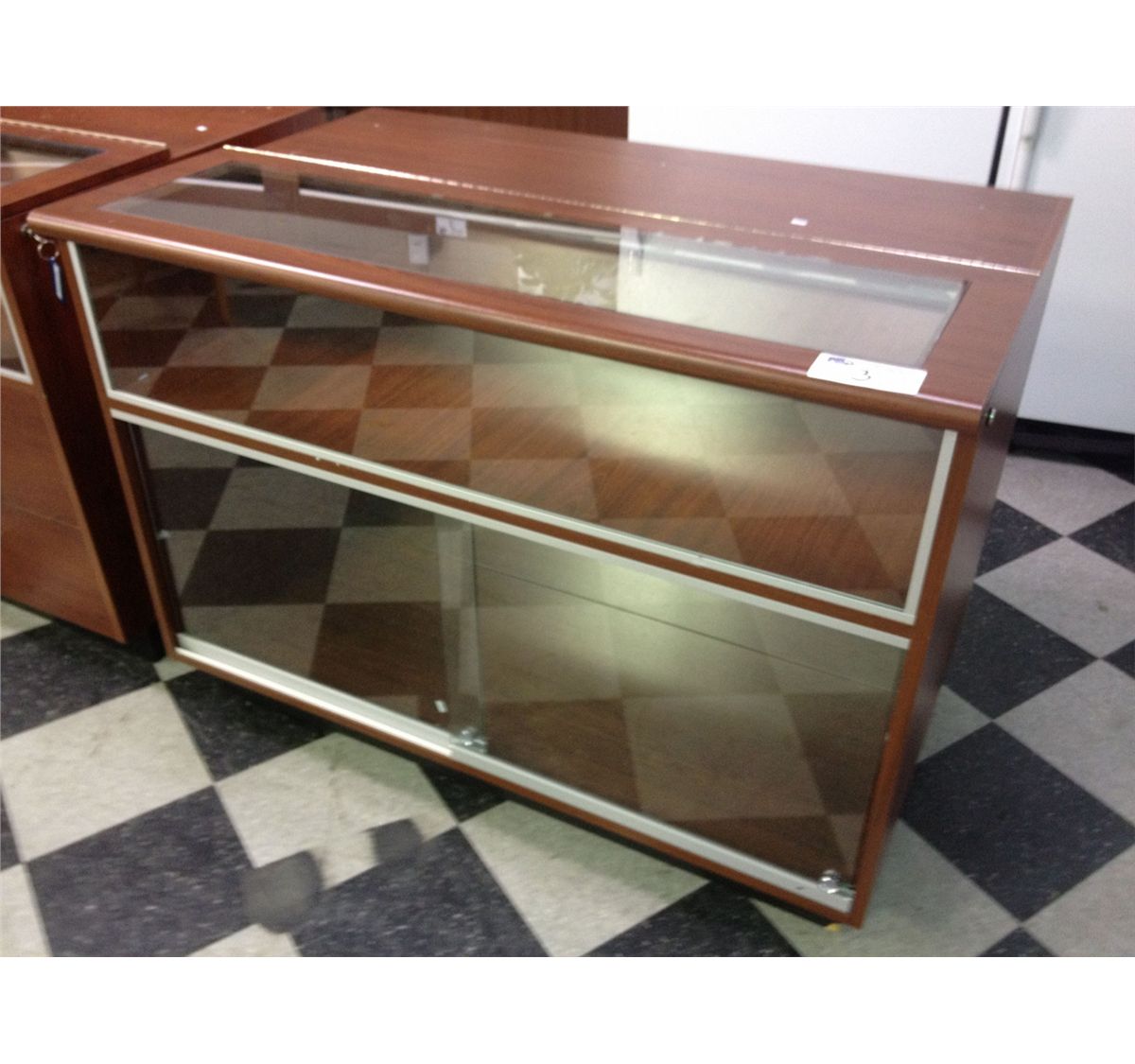 CHERRY GLASS FRONT DISPLAY CASE WITH HUTCH