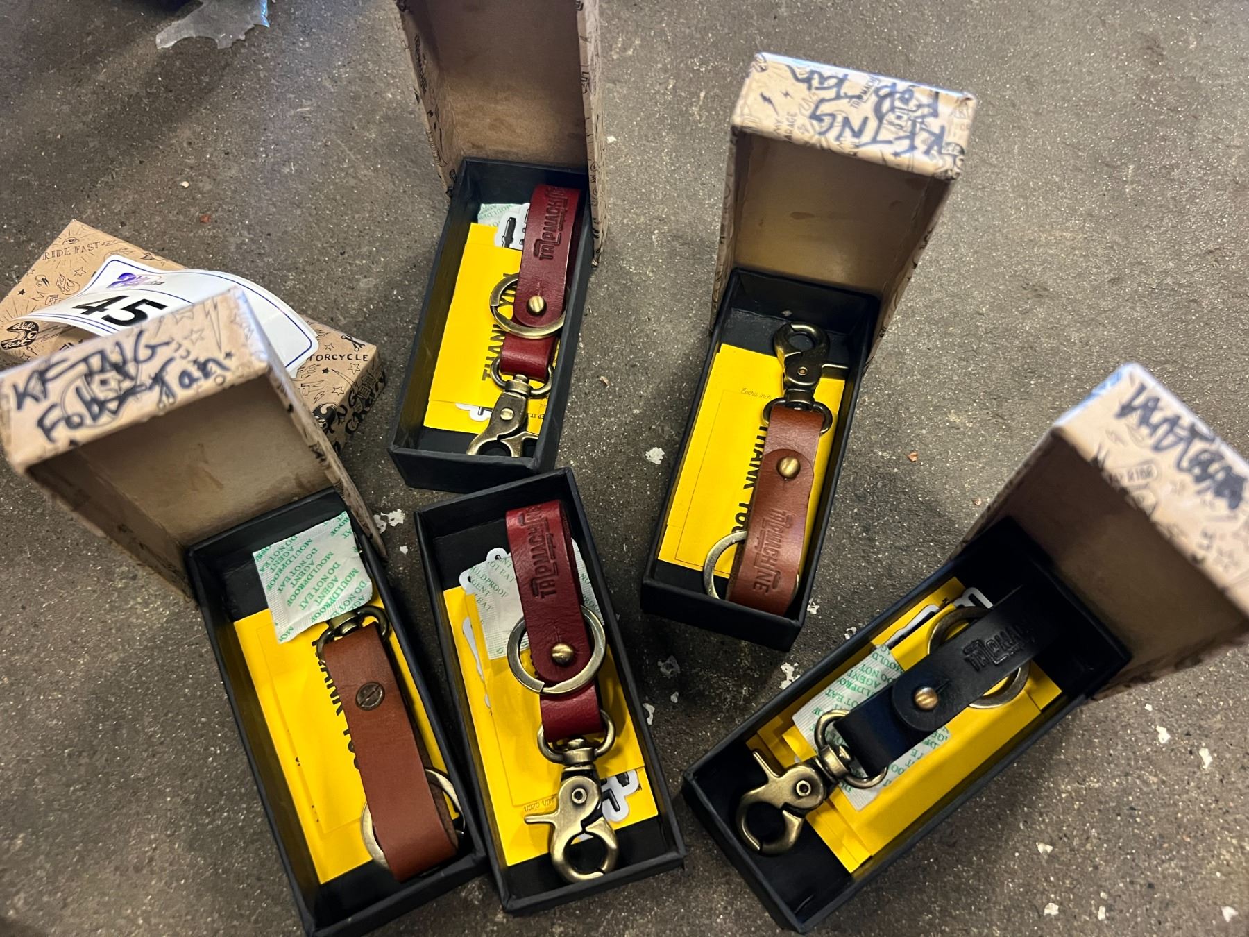 CHERRY LEATHER KEY FOB, BROWN LEATHER KEY FOB, 3 TAN LEATHER KEY FOBS