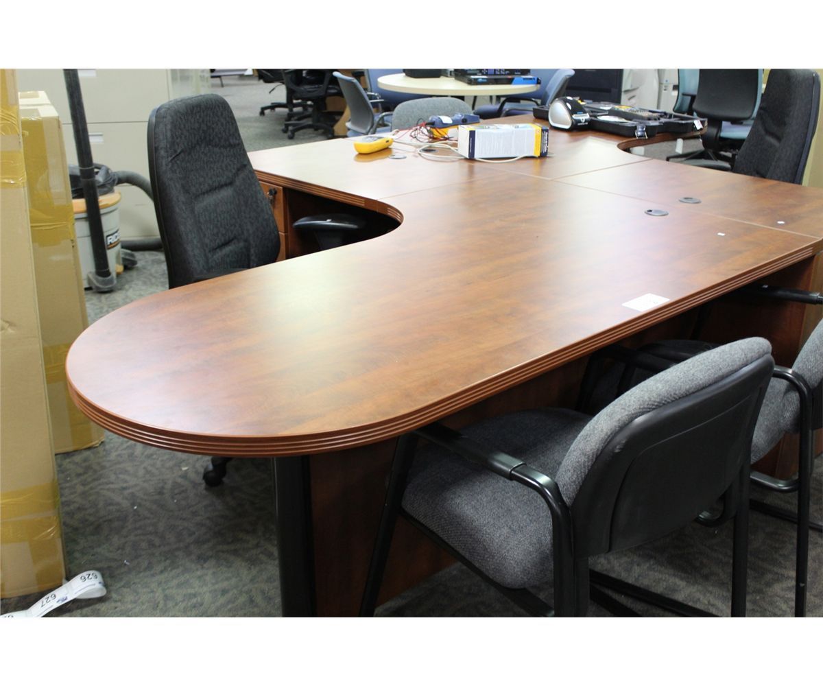 CHERRY P-TOP L-SHAPE  BEVEL EDGE EXECUTIVE DESK