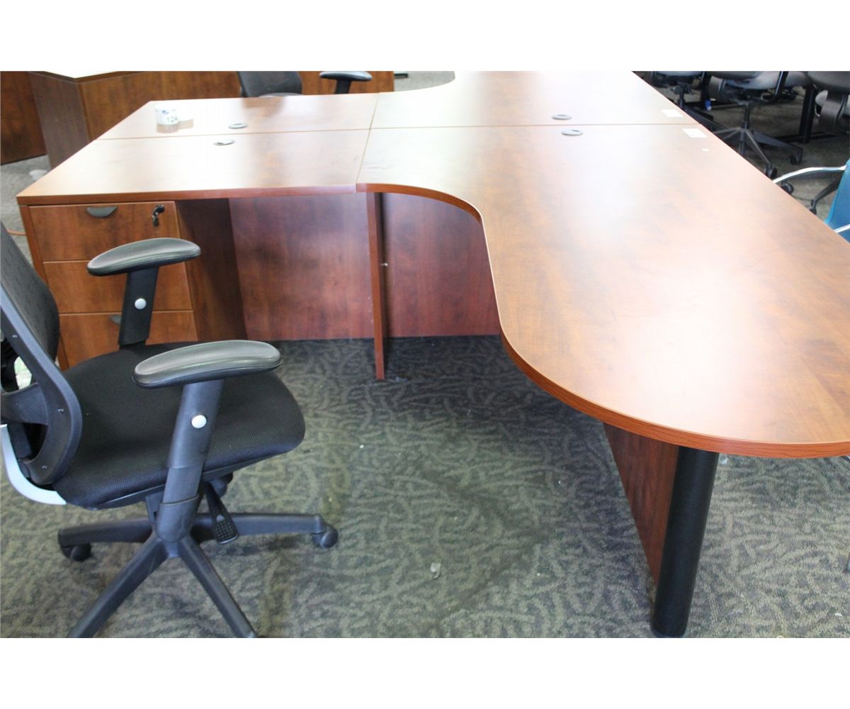 CHERRY P-TOP L SHAPE EXECUTIVE DESK