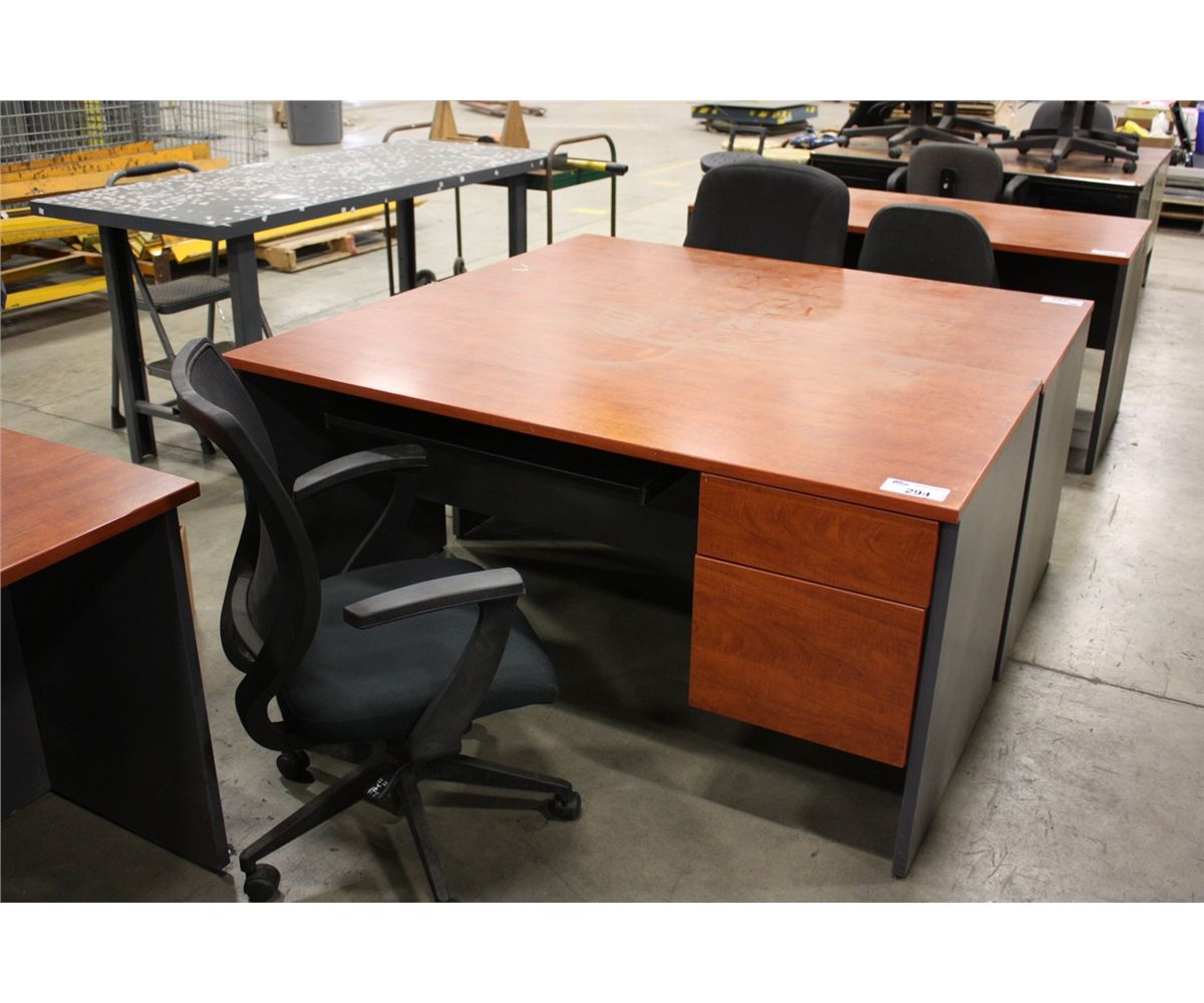 CHERRY SINGLE PEDISTAL DESK WITH CHAIR